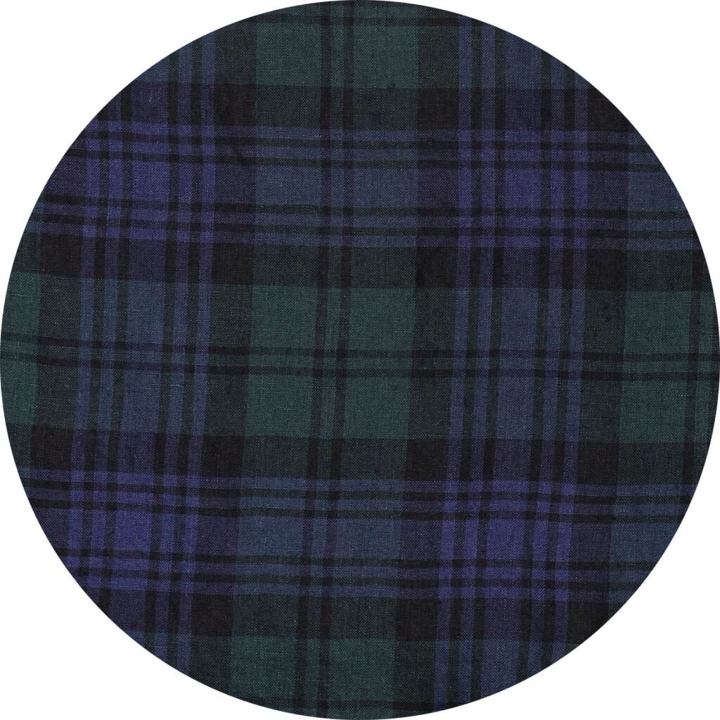 スコットランドの伝統的なチェック柄をベースに、格子になる糸の色や並べ方まで快晴堂がこだわって仕上げた、オリジナルのリネンタータン。青を明るめに、緑を深めにした少しシックな色合いが、大人っぽくやさしい印象をつくってくれます。素材はLINEN100%で、風通しのよさとさっぱりとした着心地も魅力です。