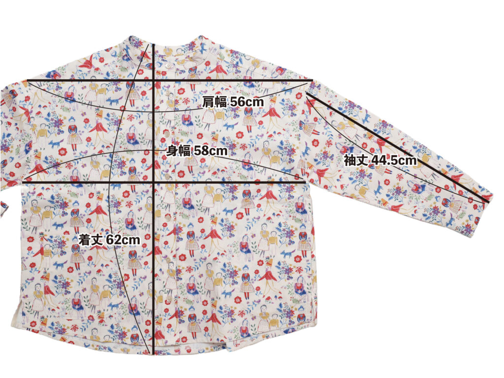 | サイズ | 着丈62cm/身幅58cm/肩幅56cm/袖丈44.5cm |