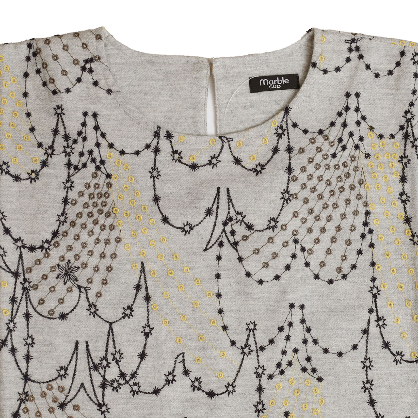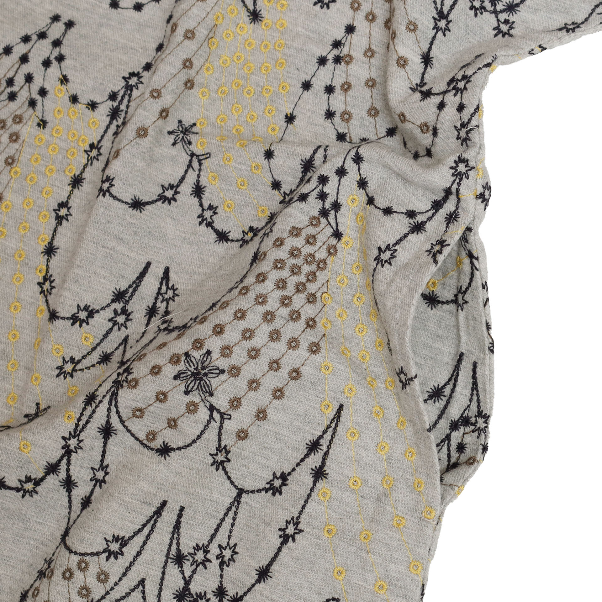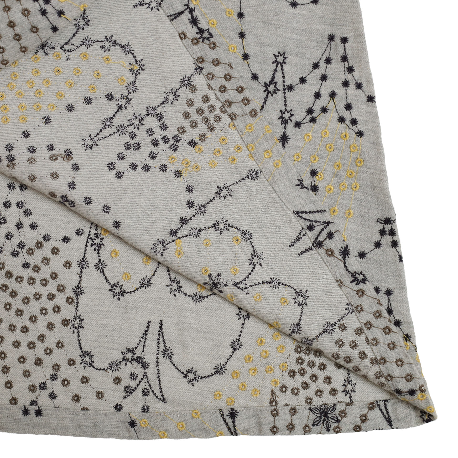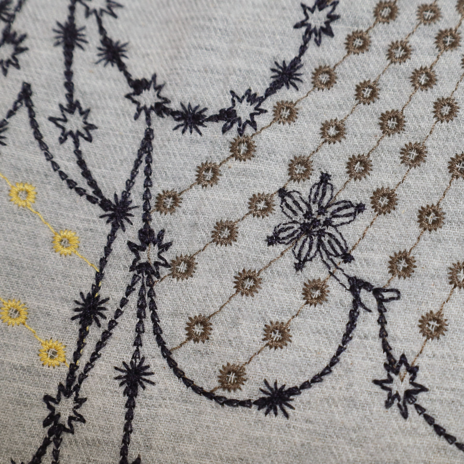 03FF074012 EMB swallow ソデリブワンピースは、marble SUD【マーブルシュッド】の幸運を象徴する渡り鳥であるツバメとキラキラとした星のシャワーを表現した、どこか幻想的で繊細な刺繍のテキスタイルを使用したワンピース。やわらかくほっこりとしたコットン素材です。袖口の長いリブがアクセントになるフレアワンピース。リブは伸縮性のあるフライス素材を使用し、袖のプッシュアップがしやすく、袖丈をアレンジしてお召しいただけます。リブの上部分は少しパフ袖のようなふんわりとしたシルエットを作り、女性らしさを演出。たっぷりとした生地の分量感があり、歩いた時の揺れ感が綺麗な一着です。ポケットが付いているのも嬉しいポイントです。