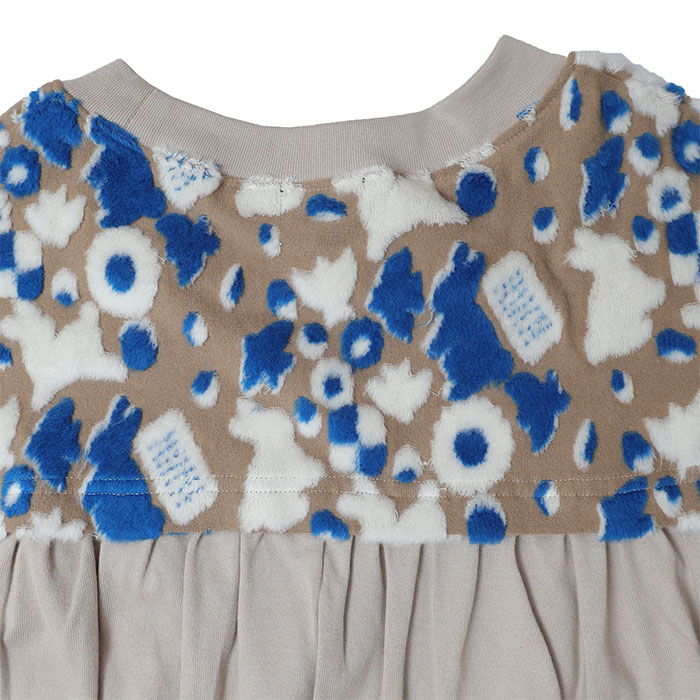 03GS002078 cookie JQ キリカエワンピース は、marble SUD【マーブルシュッド】の缶の蓋を開けると色とりどりのクッキーがところせましと詰まっている。そんな幸せな瞬間をふんわりやさしい肌触りのコットンパイルジャカード生地に閉じ込めたワンピース。