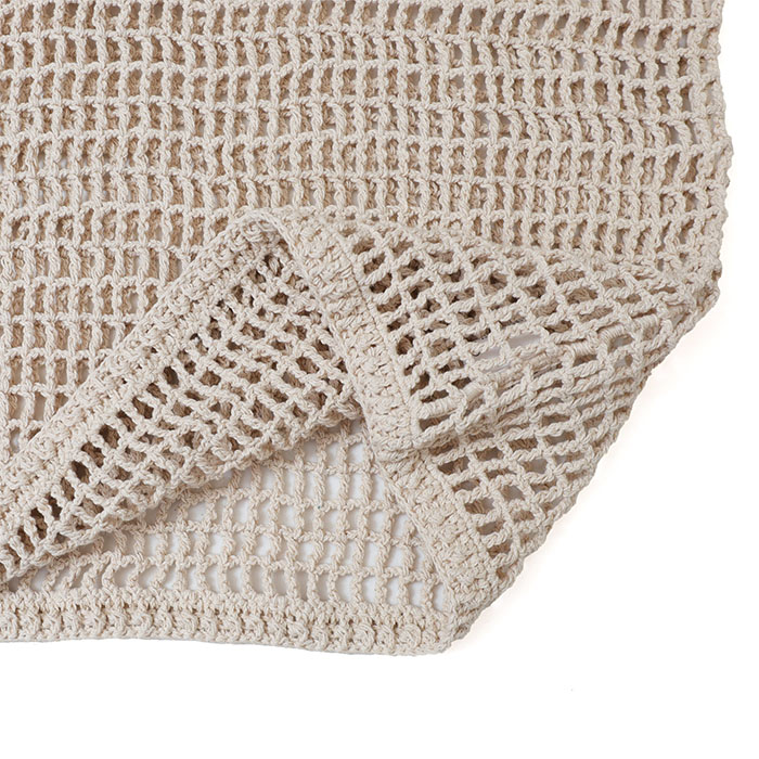 ブラウスやカットソーに重ねるだけで、いつものコーデに軽やかなアクセントをプラス。 通気性の良い綿100%素材で、春先から夏までロングシーズン活躍します。シンプルながらも存在感があり、ナチュラルスタイルにさりげない個性を添えてくれるアイテムです。