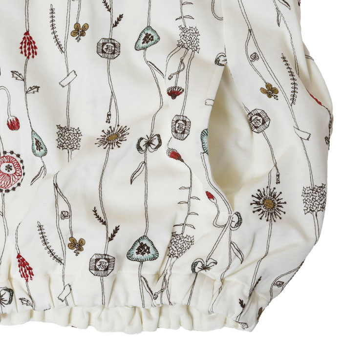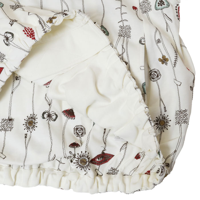裾にゴムギャザーを入れ、ファスナーを表に見せない仕様にすることで、カジュアルすぎず、少しきれいめな雰囲気に仕上げられています。裾はホールゴムで、両脇のボタンを留め替えることで丈感の調整もできます。両脇ポケット付きで、お出かけにも安心です。