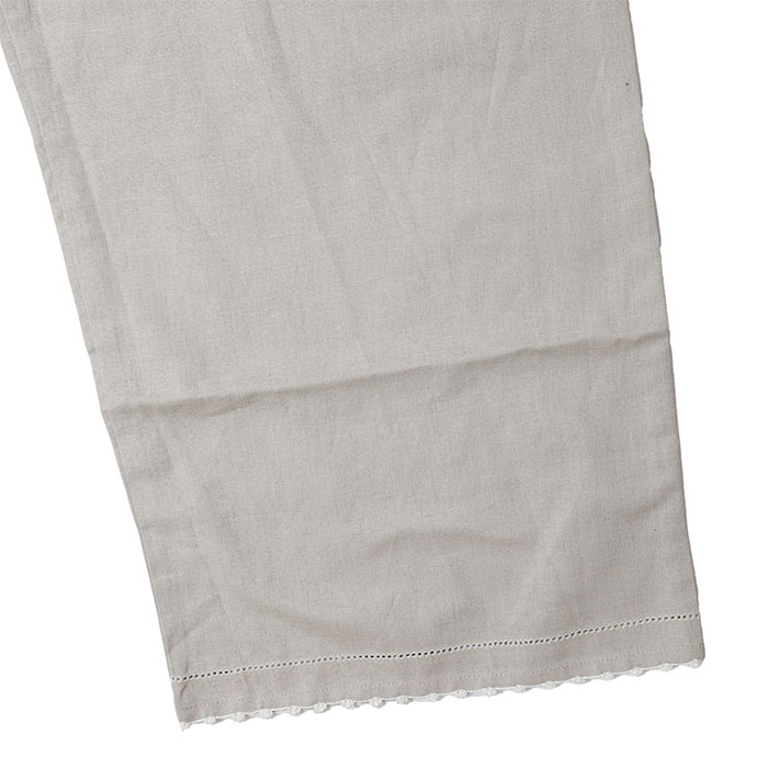 07GS071145 コットンリネン Bigパンツ は、marble SUD【マーブルシュッド】の裾にかけてストンと落ちるワイドシルエットが綺麗なパンツです。リラックス感のある穿き心地で、デイリーに取り入れやすいカジュアルな一本。裾にはハシゴレースと縁取り刺繍をあしらい、さりげないアクセントをプラス。