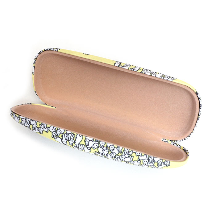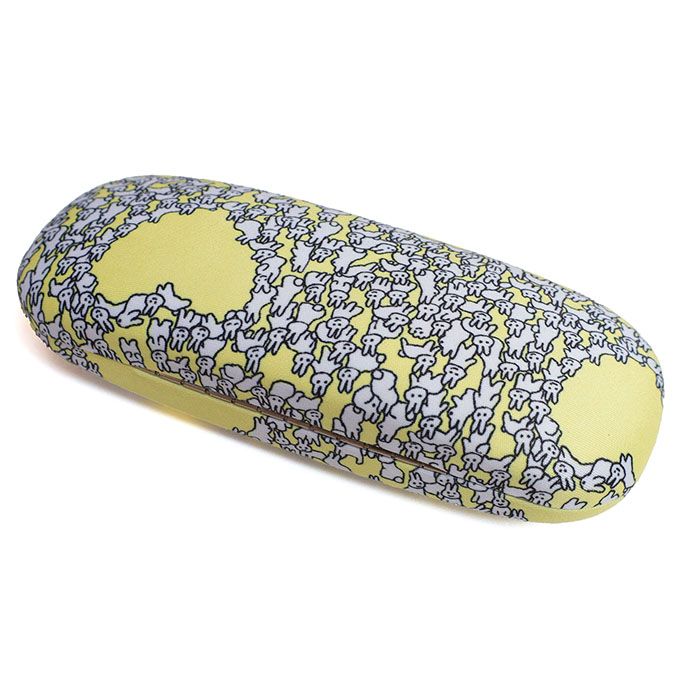 09FF999457 メガネケース Heart Rabbit 25は、marble SUD【マーブルシュッド】のぎゅぎゅっと大集合したウサギたちが、幸運の象徴ハートのモチーフを象ったデザインがキュートなメガネケース。よーく見てみると、ウサギたちの中にクマやタヌキ、モコモコの謎の生き物も…!?ハードケース仕様で、お家ではもちろんバッグの中でも安心。バネ蝶番でしっかり開閉でき、かつ、内側は金具が見えないのも嬉しいポイントです。ケースと同じ柄のマイクロファイバークロス付きで、メンテナンスのひとときも楽しくなること間違いなし。ギフトにも◎