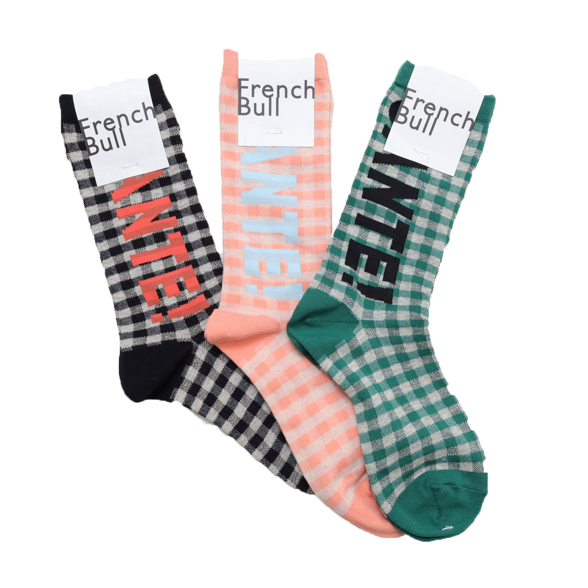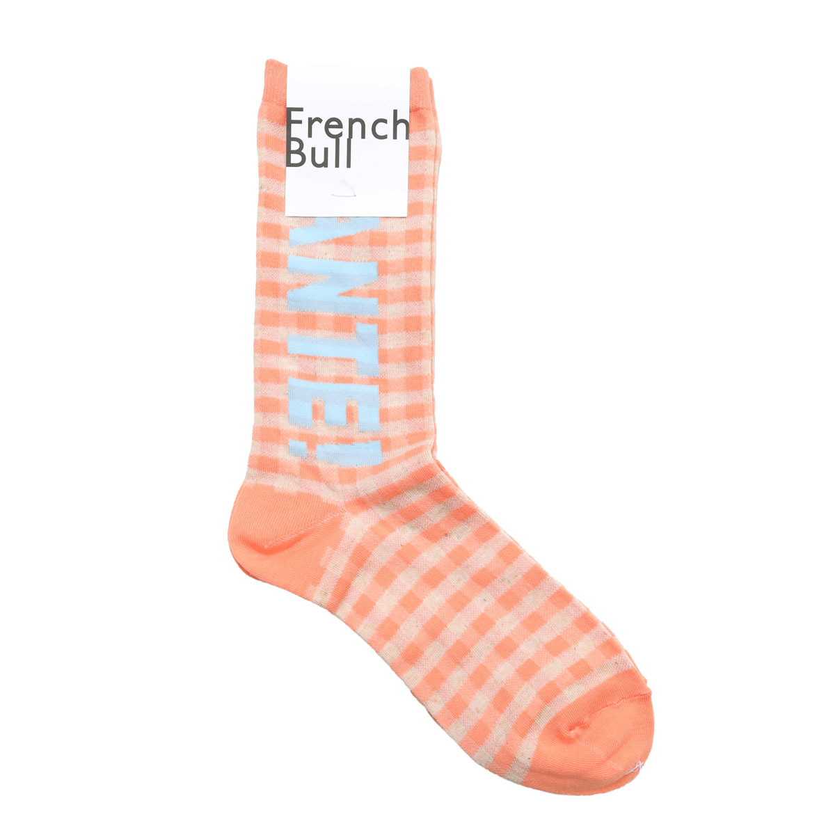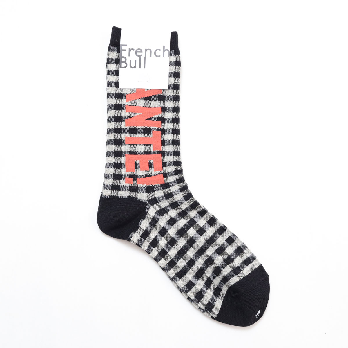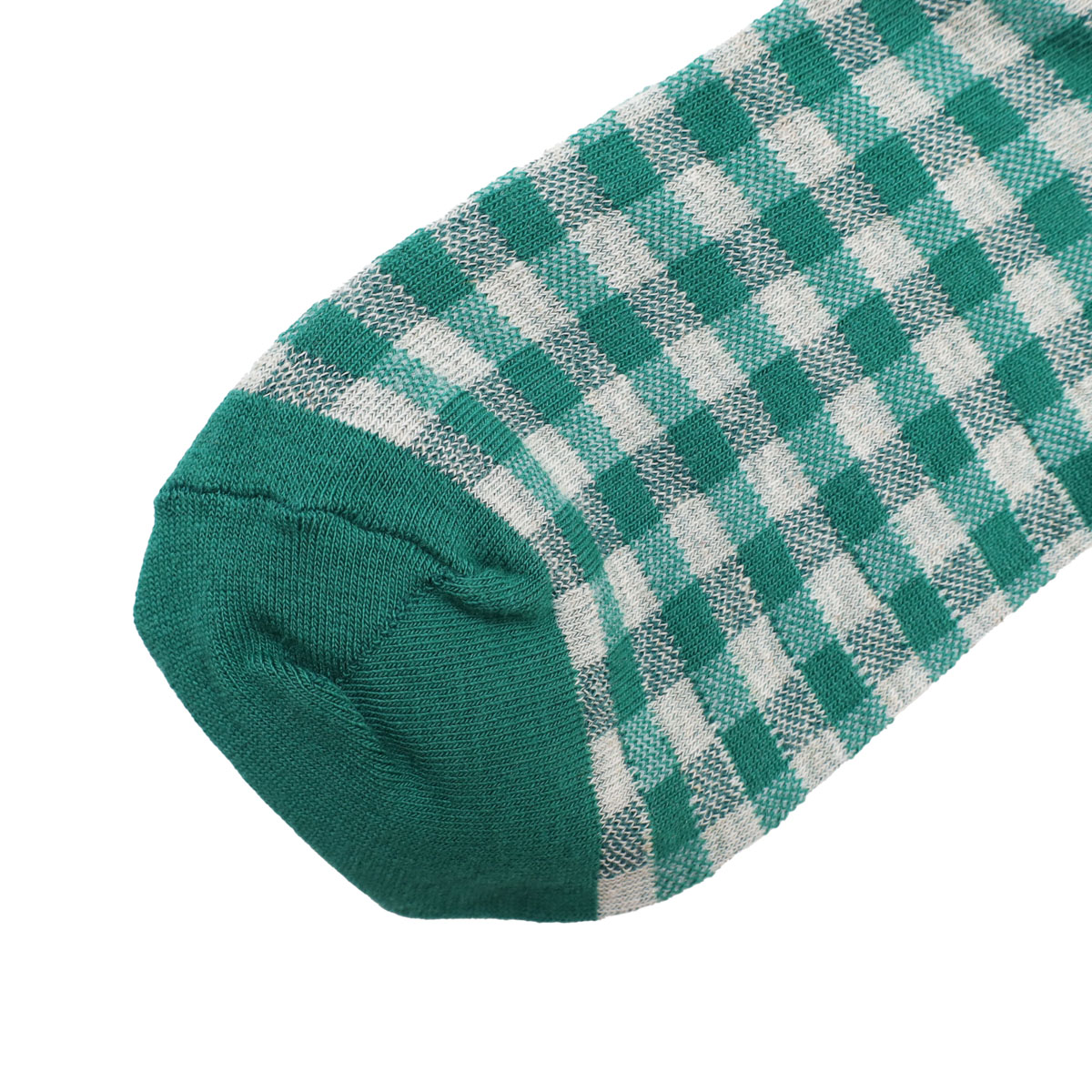 11-26101 サンテソックス は、French bull【フレンチブル】のテーブルに敷かれたギンガムチェック柄のクロスに「SANTE!」と乾杯の掛け声が聞こえてくる宴のワンシーンをイメージしたソックス。ベースは綿麻糸と綿糸を使用し、薄手に編み立てられています。コーディネートの主役にオススメのアイテムです。