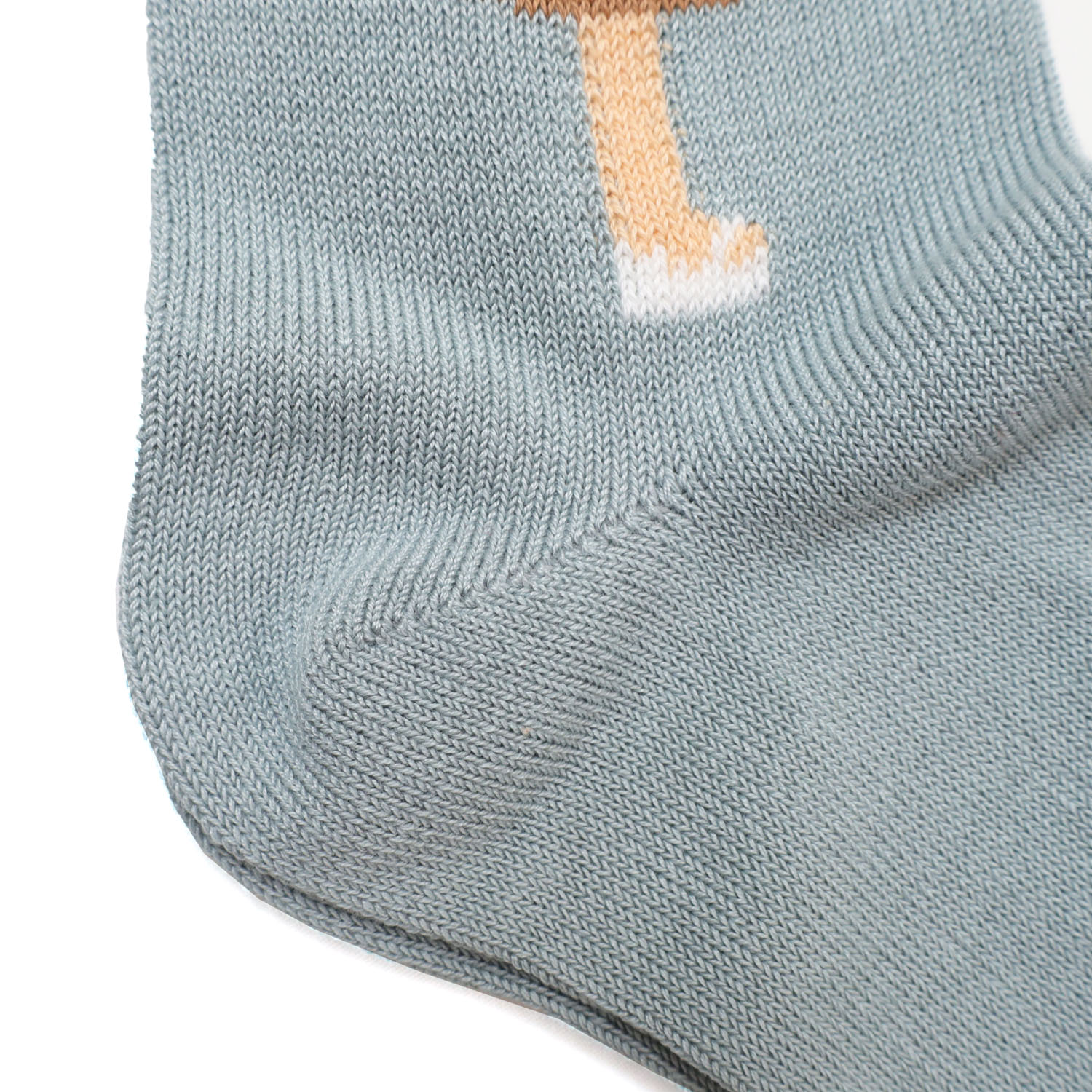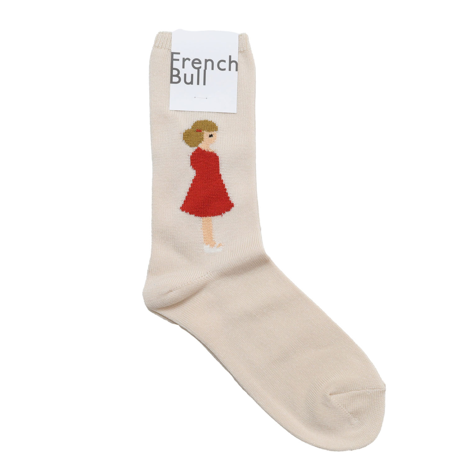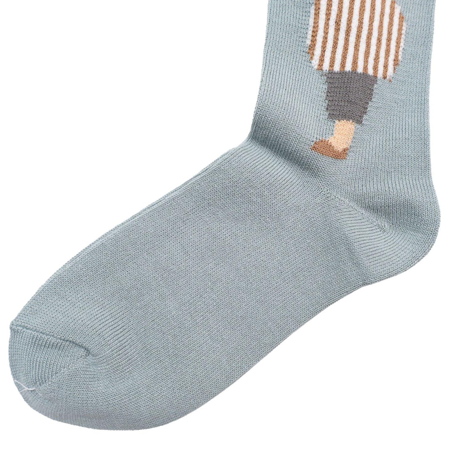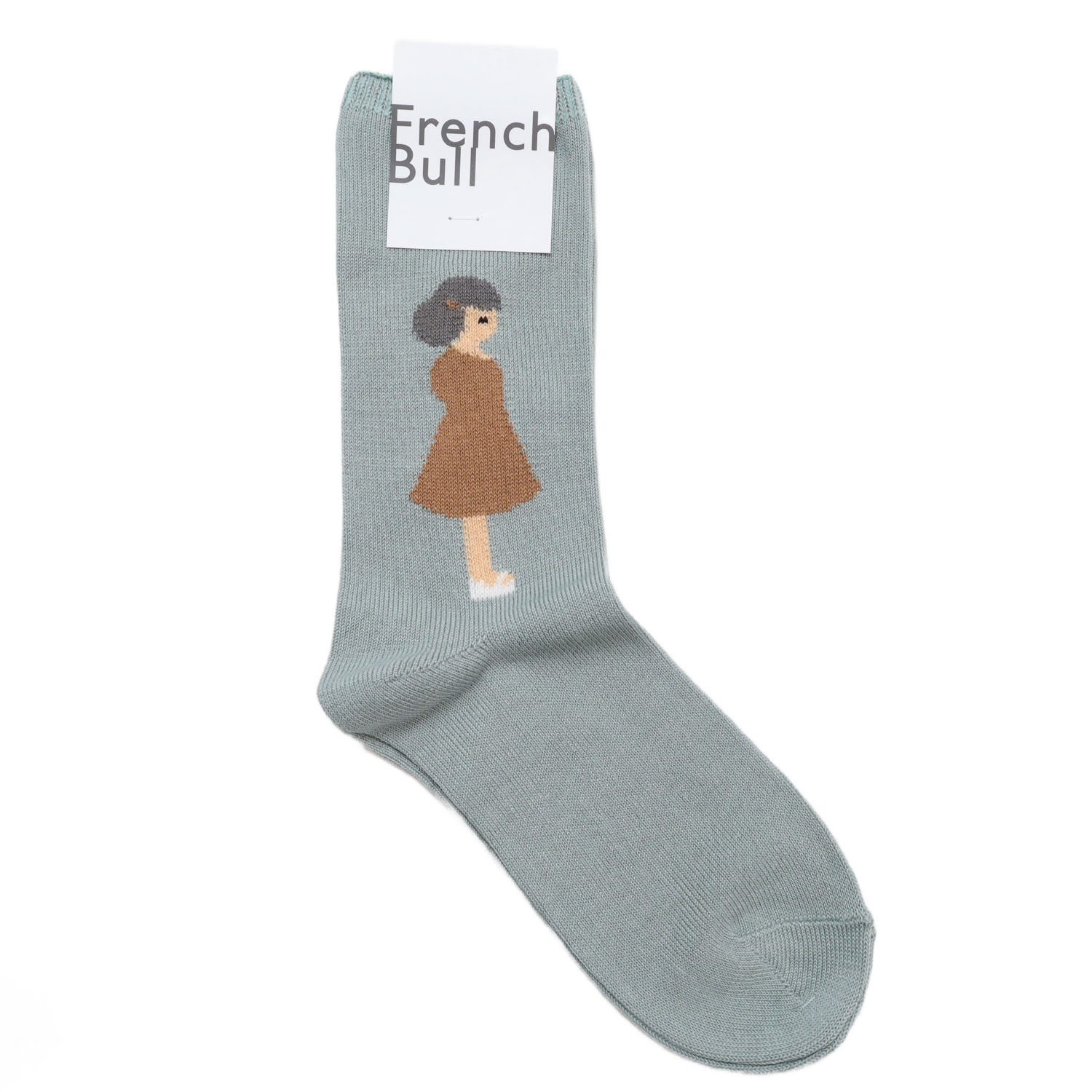 11-26104 カップルソックス vacances は、French bull【フレンチブル】の男性と女性がモチーフで、左右で柄が変わる楽しいソックス。夏のバカンスらしい爽やかな装いに仕上げられています。光沢感のある綿シルケットを使用し、程よい厚みに編み立てられています。コーディネートのポイントになるアイテムです。