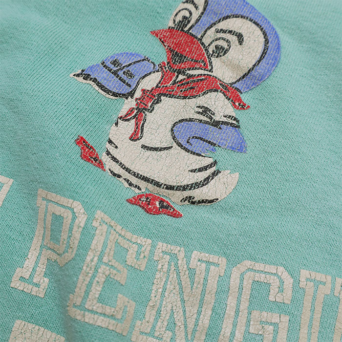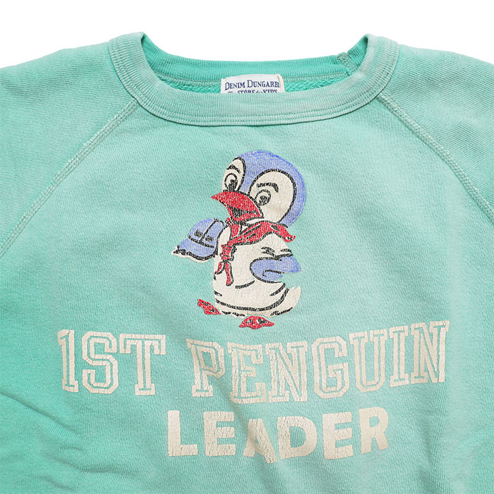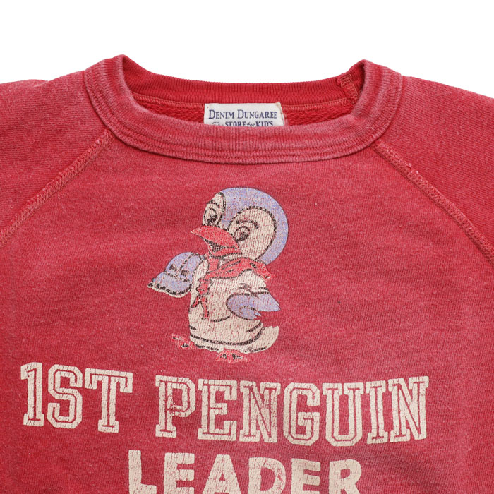 22580411 ビンテージウラケ PENNIE LEADER スウェットは、DENIM DUNGAREE【デニム&ダンガリー】の古着っぽい加工でアメカジ感のあるトレーナー。ペンギンの「かすれたプリントやこなれた雰囲気のお色にこだわりを感じる一着です。