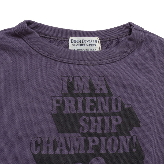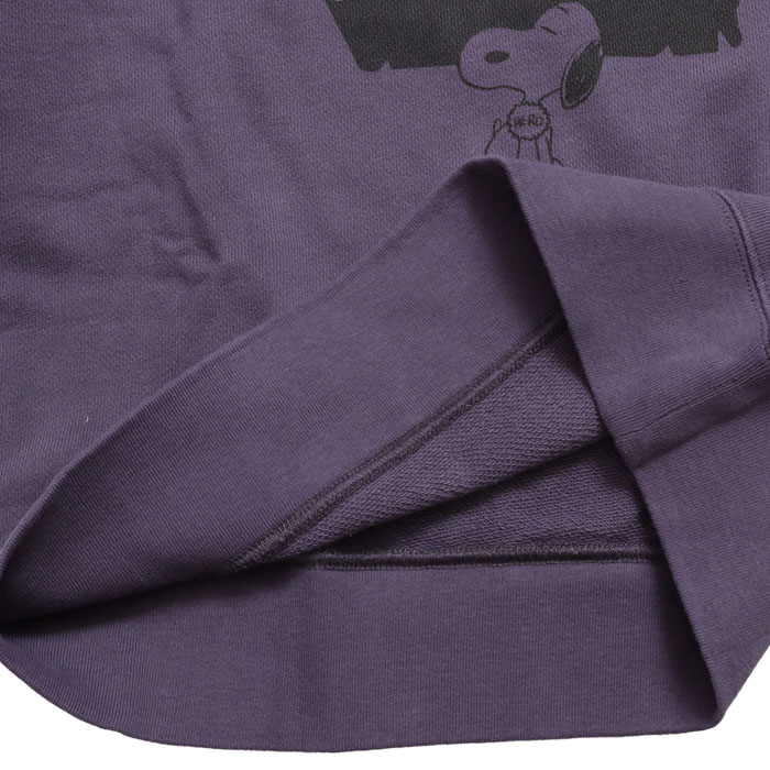 22581498 ウラケ SNOOPY HERO スウェットは、DENIM DUNGAREE【デニム&ダンガリー】のSNOOPYは、日常の中での確かな幸せをいつも仲間と分かち合っている内容のメッセージが入った裏毛のスウェット。バックの凹凸感のあるプリントがポイントです。