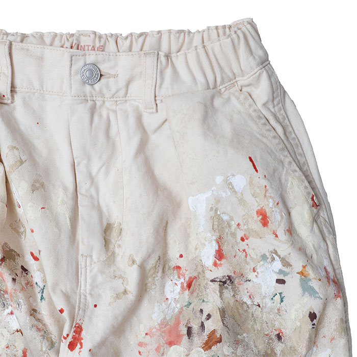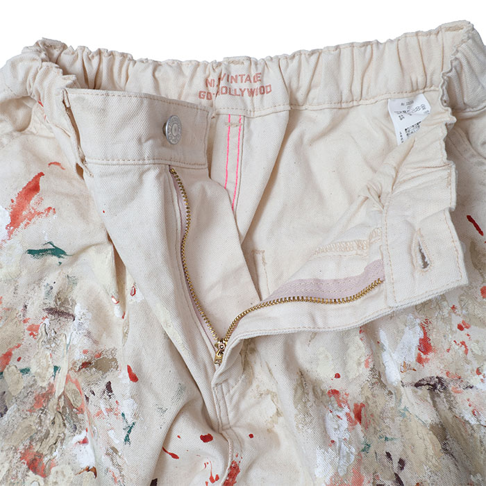 32620606 Work Pants は、Go to Hollywood【ゴートゥハリウッド】のワークパンツならではのちょっと無骨なシルエットが、ラフなのにどこか様になるのが魅力的なアイテム。ハード目な汚し加工でも、よく見ると色合いがこっそりピンクだったりして、ちらっとかわいげがあります。地味に見えて、実はすごく手がかかってる。そんなひと癖が、穿いたときの雰囲気をぐっと底上げしてくれます。オールゴムの前開き仕様でワークらしい太さをたもちながらも、すっきりと見せてくれるわがままシルエットも嬉しいポイントです。