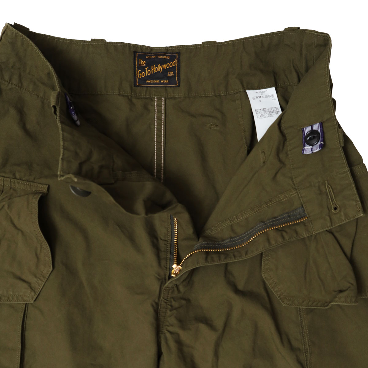 32620613 フリフリフラップ ウェザーパンツ は、Go to Hollywood【ゴートゥハリウッド】のイギリス海軍、通称ROYAL NAVYは500年近く続く伝統ある軍隊が生んだ、機能美あふれるパンツたちの機能的なディテールを落とし込んだパンツをベースにデザインされた一着。今なおファッションニスタやヴィンテージマニアの心をつかんで離しません。 そんなパンツのフラップを、ふりふりっと揺らせば硬派なパンツが一気に乙女心をくすぐる1本に! 渋いのに可愛い、遊び心がミックスされた一本です。