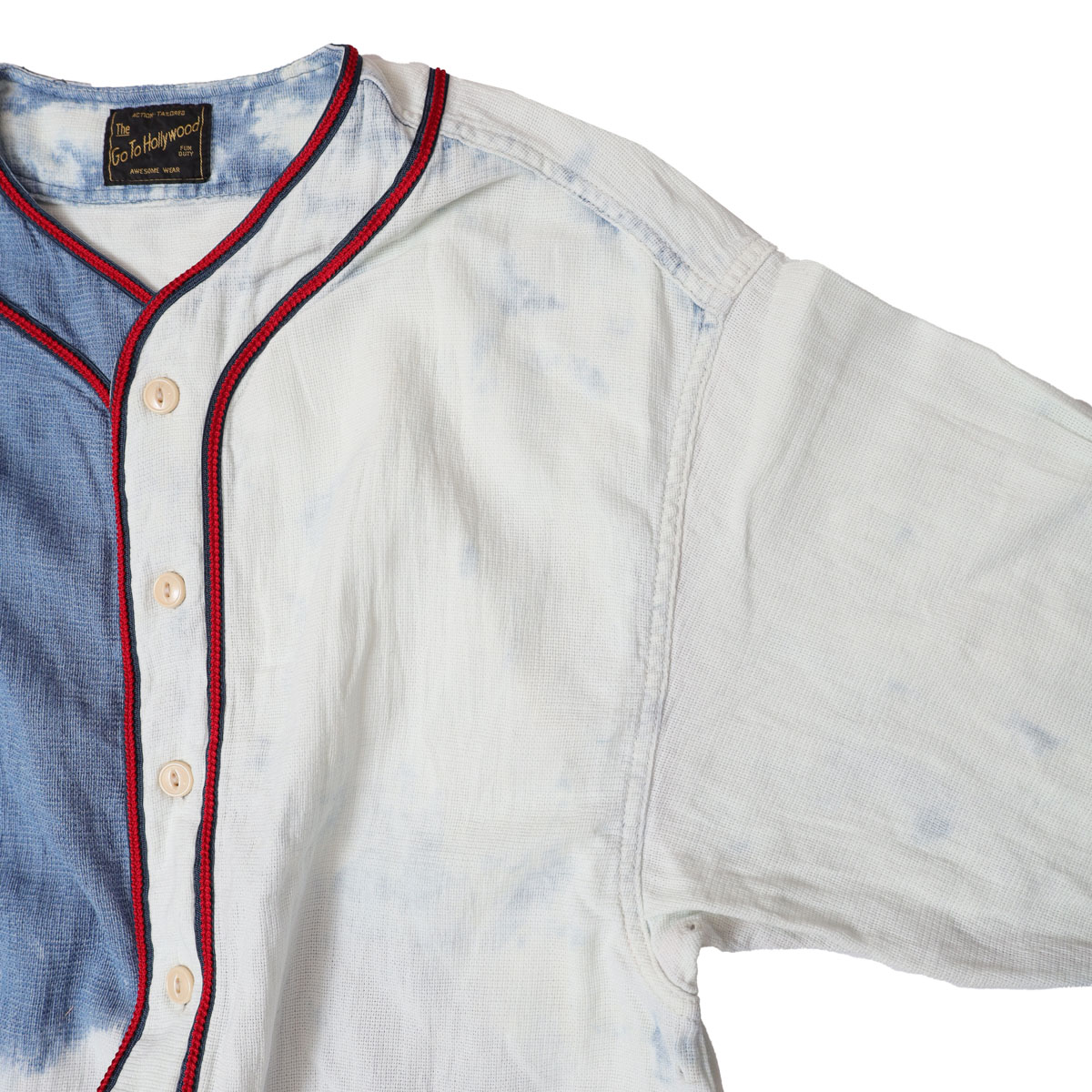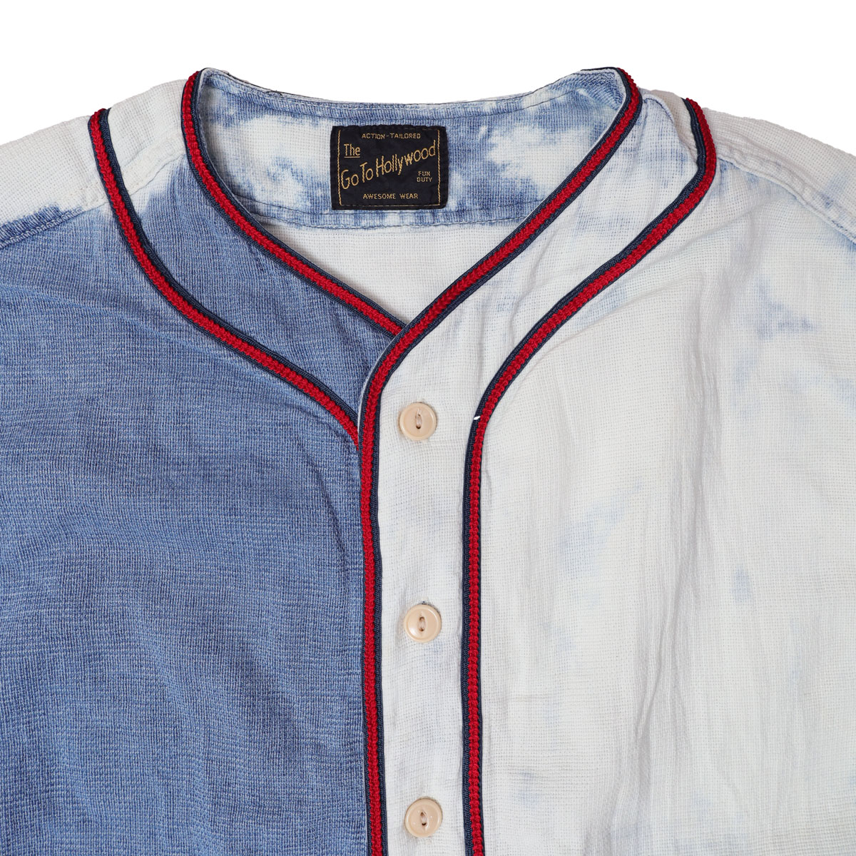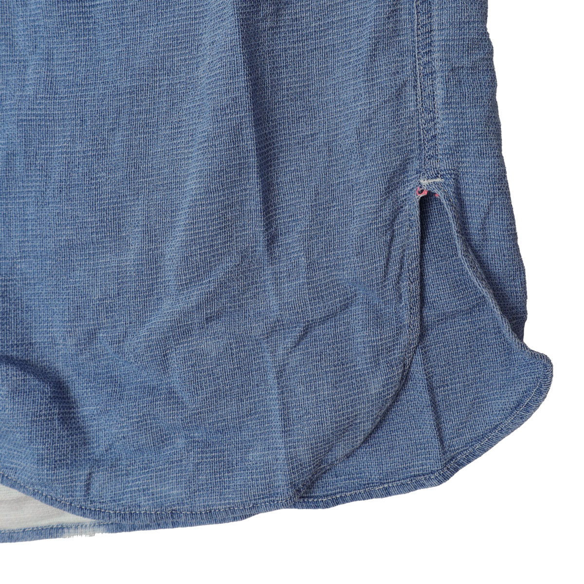32620901 シアーシャンブレー ベースボール ワンピース は、Go to Hollywood【ゴートゥハリウッド】のシアー素材をインディゴ染めしたちょっとクセのある表情が魅力のベースボールシャツ。 透け感と深みのある色がいいバランスで、真夏の羽織りにちょうどいアイテム」。 日焼け対策にも、クーラーでひんやりな室内にも1枚あると頼れます。