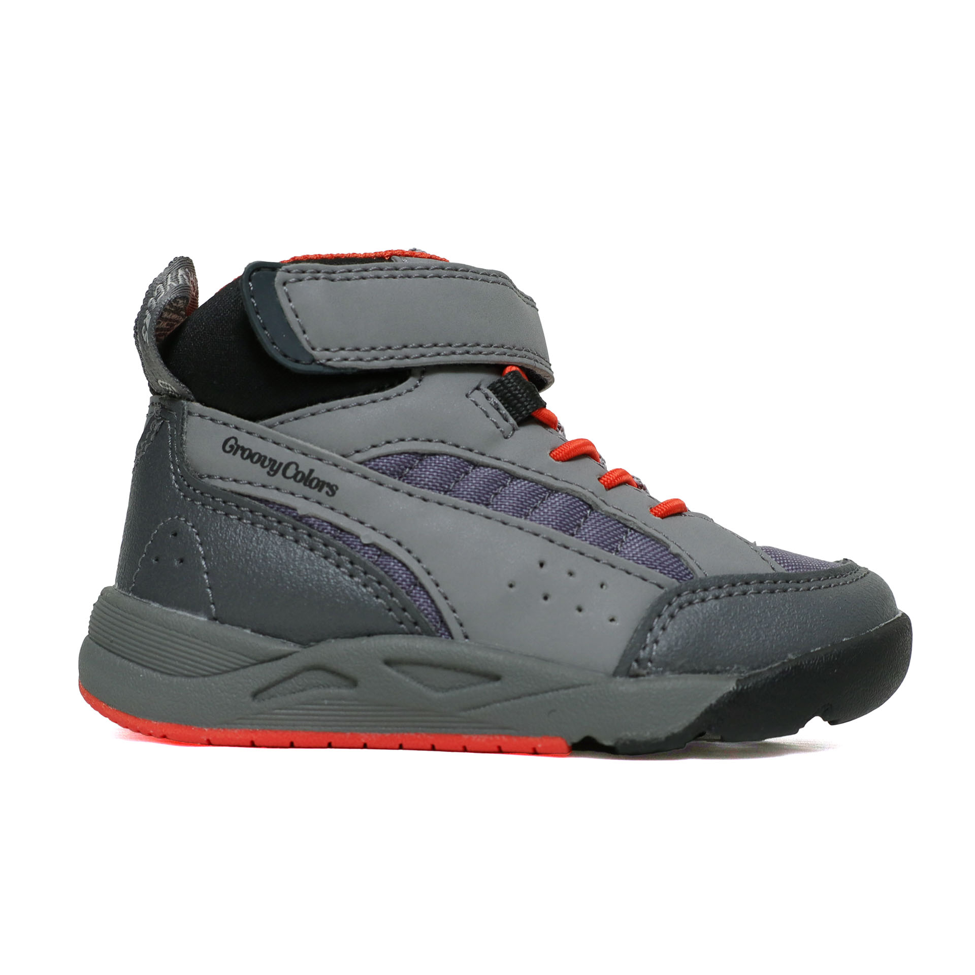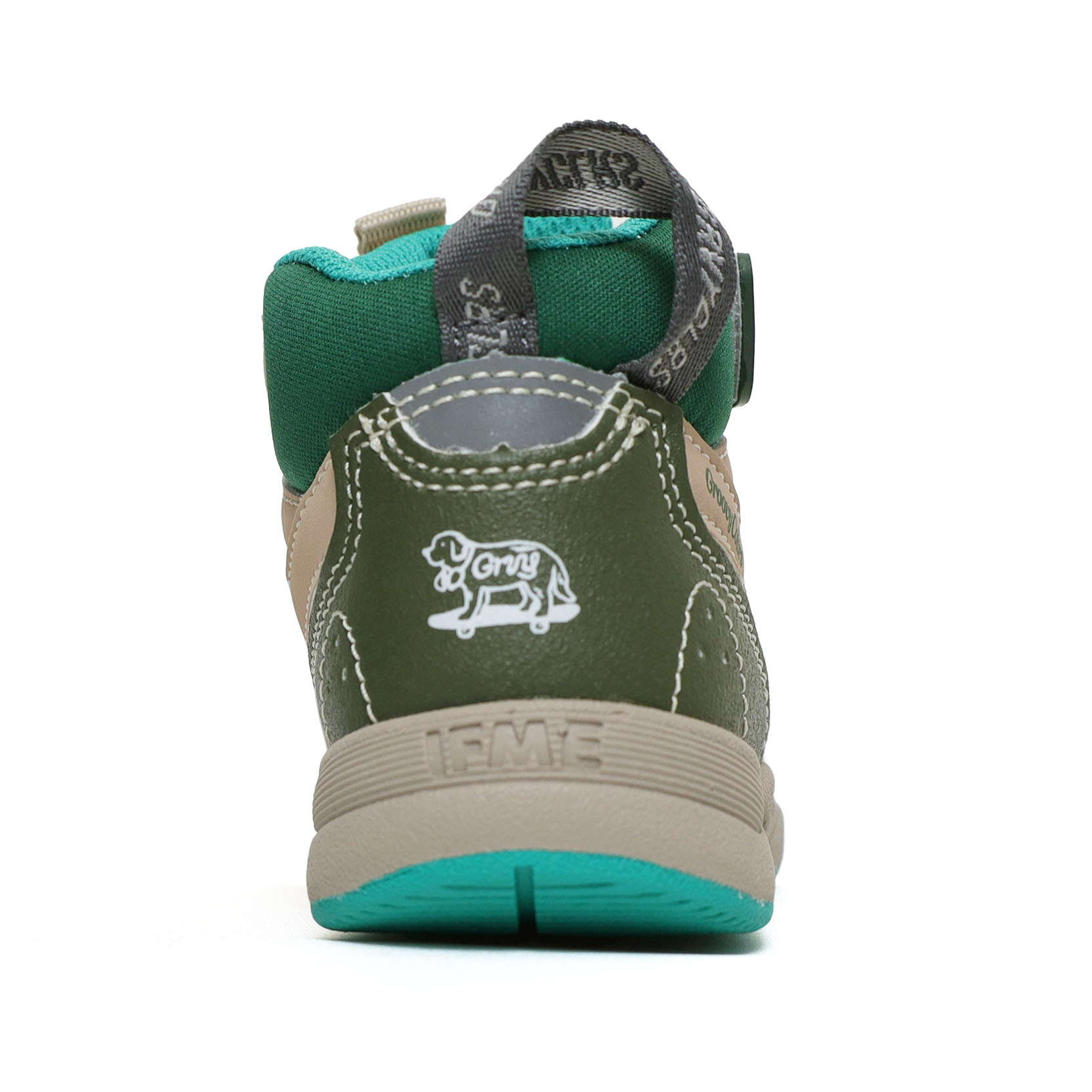 42581001 GC×IFME+ ミドルカットスニーカーは、GROOVY COLORS【グルービーカラーズ】のGC×IFME+(イフミープラス)コラボのミドルカットスニーカー。 マジックテープで着脱。 側面にブランドロゴ、踵部分にスケボー犬のbuddyのプリント。 インソールにオリジナル総柄プリント。 【IFME(イフミー)】 早稲田大学スポーツ化学学術院鳥居俊研究室と丸紅コンシューマーブランズ株式会社が協同で開発した子ども靴ブランド。誕生以来20年、「子どもの足の健全な育成をサポート」を変わらないコンセプトとして、さまざまな高機能子どもぐつを開発。足の筋肉が力を発揮しやすい構造、土踏まずのアーチ形成を促進するカップインソールなど、歩きやすさ、快適さに加えた充実の機能で、いまでは”子どもぐつのスタンダード”としてご愛用いただいている。