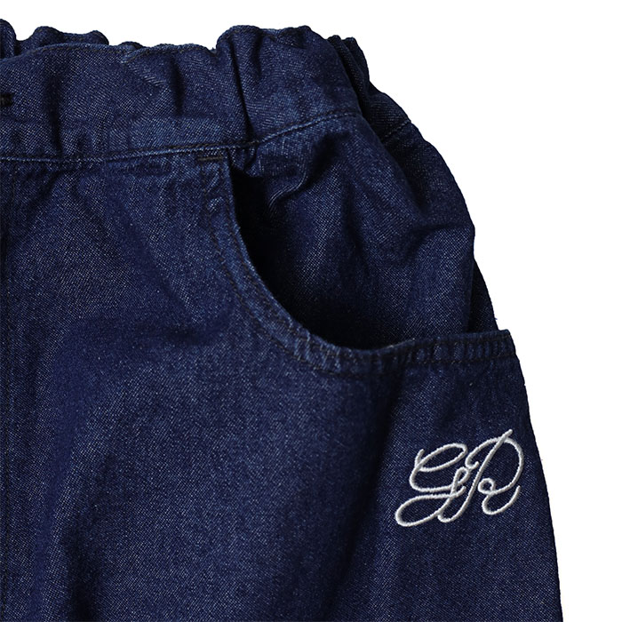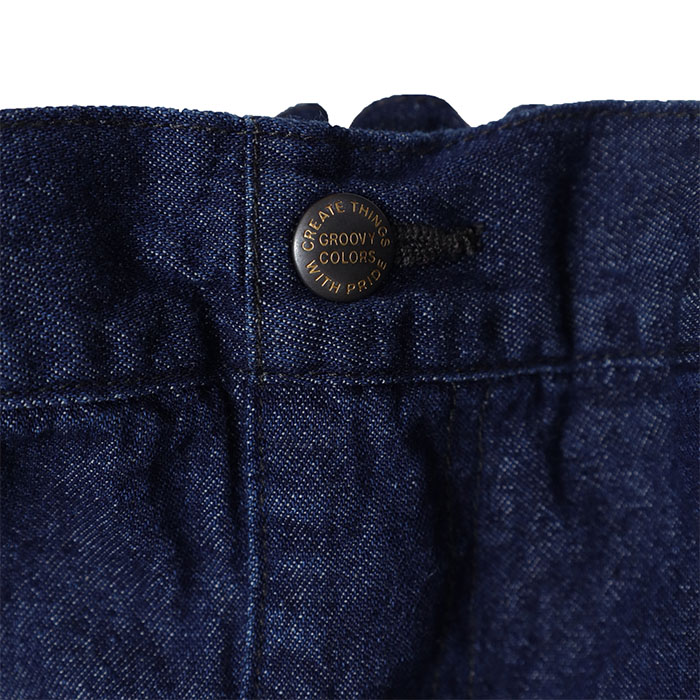 42620609 8oz Denim Barrel Leg Long Pants は、GROOVY COLORS【グルービーカラーズ】の脇の切り替えによって、膝から裾に向かって樽のように丸みのあるシルエットが特徴のバレルレッグ型パンツ。カジュアルにもキレイ目にも着こなせる1本です。左前にはgとRを組み合わせたロゴ刺繍。両脇と後ろにポケットがあり、アジャストゴムで調節可能です。