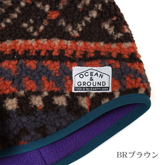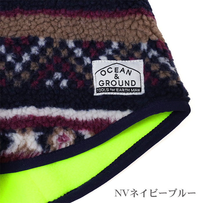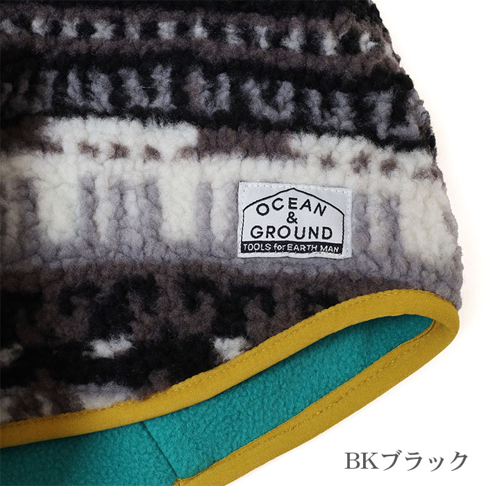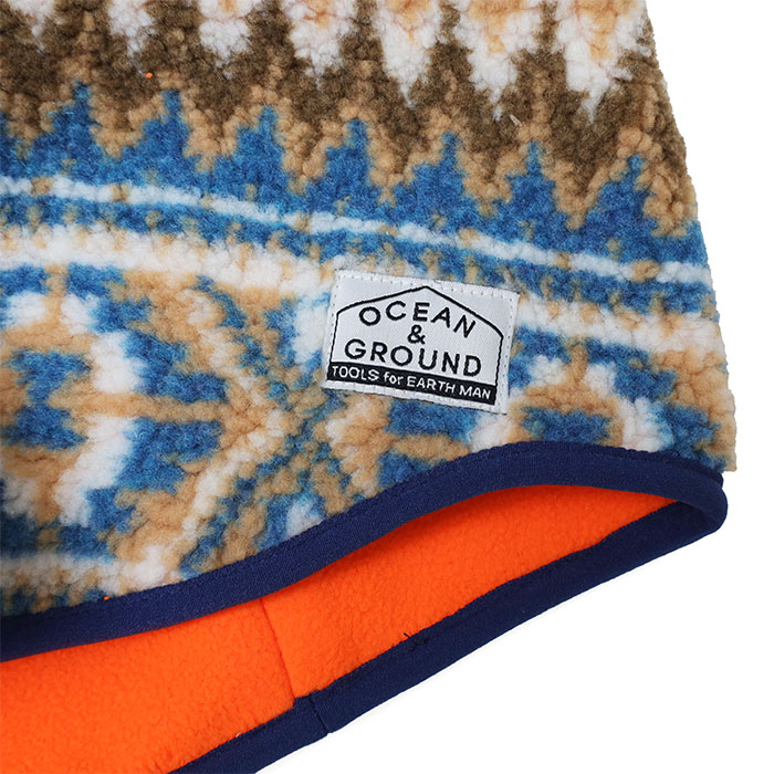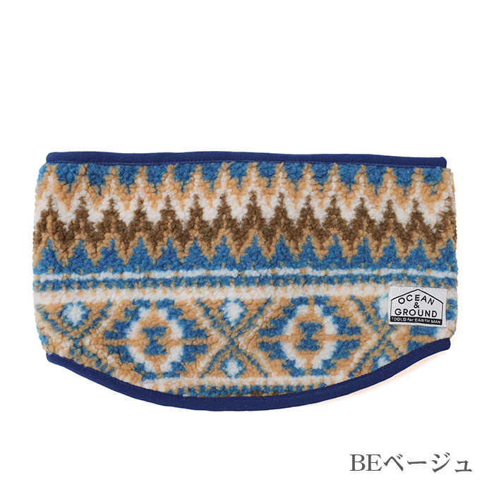 4523602 ジャガードボアリバーシブルネックウォーマーは、OCEAN&GROUND【オーシャン&グラウンド】のジャガードボア、フリースのリバーシブルネックウォーマー。 色味が可愛いアウトドアテイストのジャガードボア。 裏フリースの配色もポイントです。