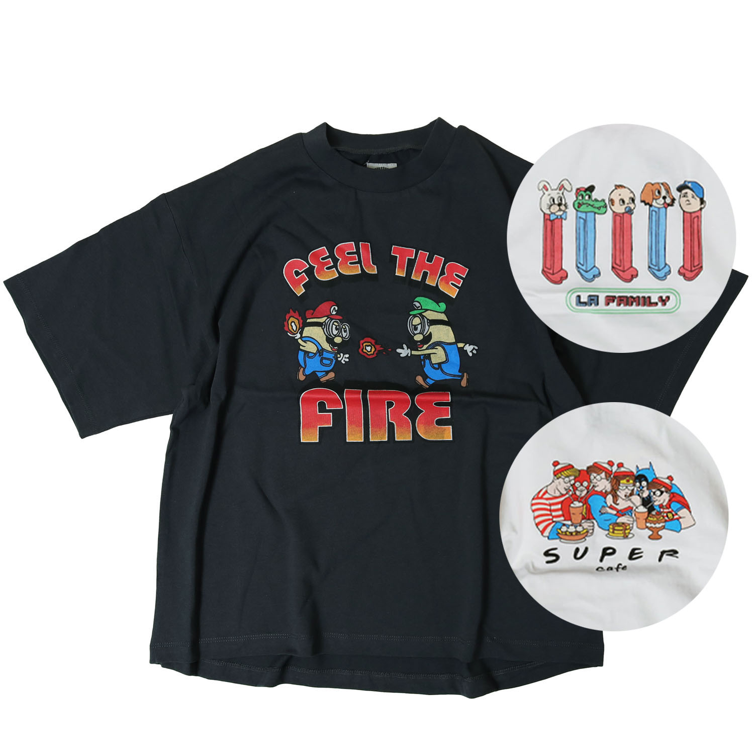 4616102・4616191 FUN! FUN! FUN!プリントTシャツ は、OCEAN&GROUND【オーシャンアンドグラウンド】のキャッチーでワクワクするパロディグラフィックTシャツ。 カラフルでユニークなタッチで描かれたキャラクター達が、HAPPYな気分にさせてくれます。 ゆったりとしたBIGシルエットで着心地も◎。