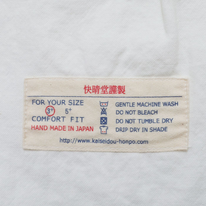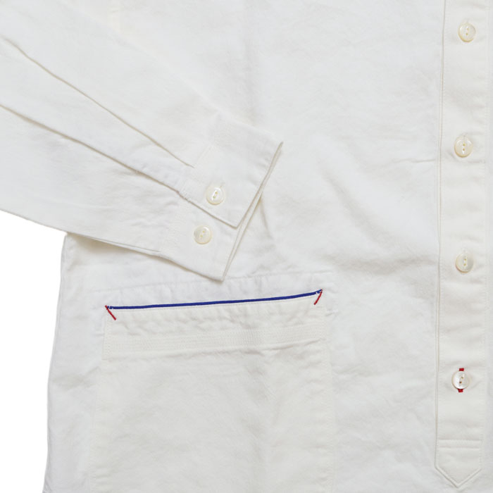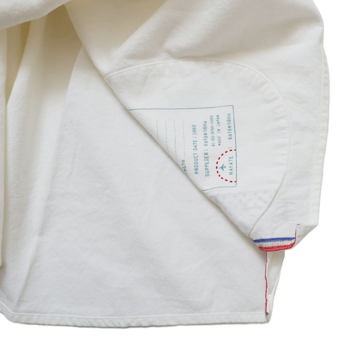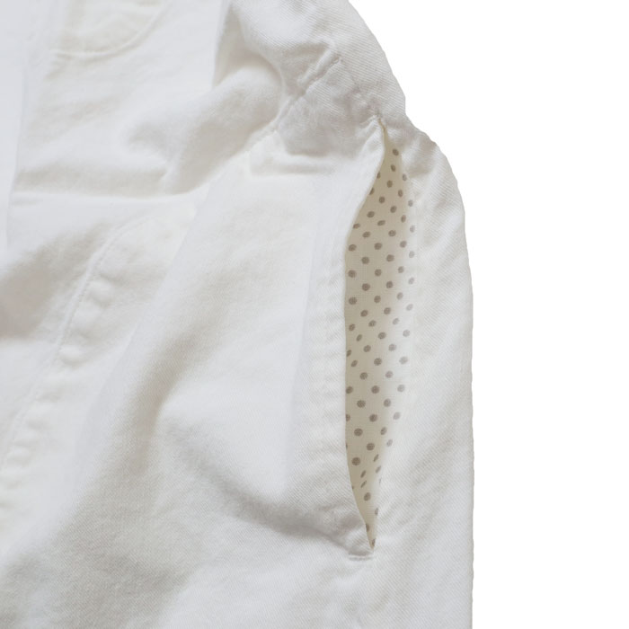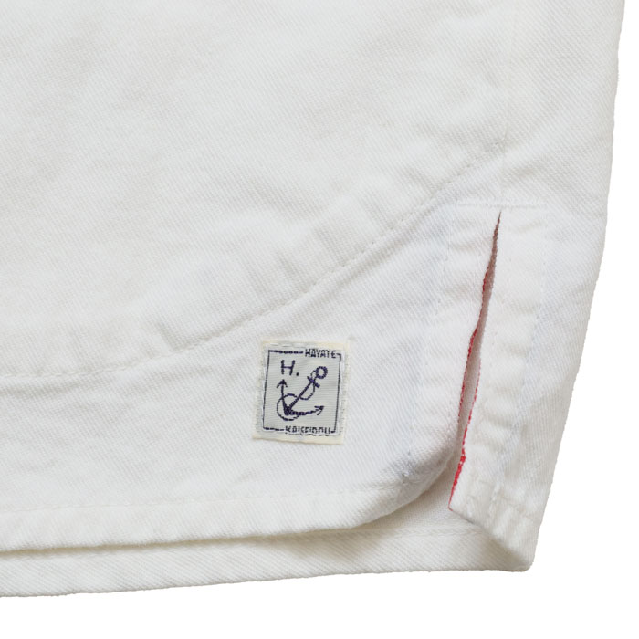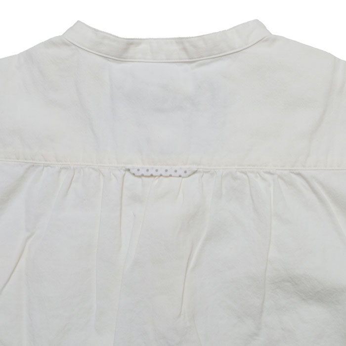 53S-47 HAYATE ホワイトシャツ 洗えるウール混ツイル ホワイト・スタンドプルオーバーシャツは、快晴堂【かいせいどう】の綿に少しウールが入ったツイル素材を使用したシャツ。綿の軽やかさとカジュアルさ、ウールのあたたかみのある表情と肌触り、それぞれの長所を持ち、冬にぴったりなアイテム。立体感のあるきれいなシルエットとカジュアルさのバランスが良い、プルオーバーだけど前開きに見えるデザイン。お手入れが簡単なのも嬉しいポイントです。