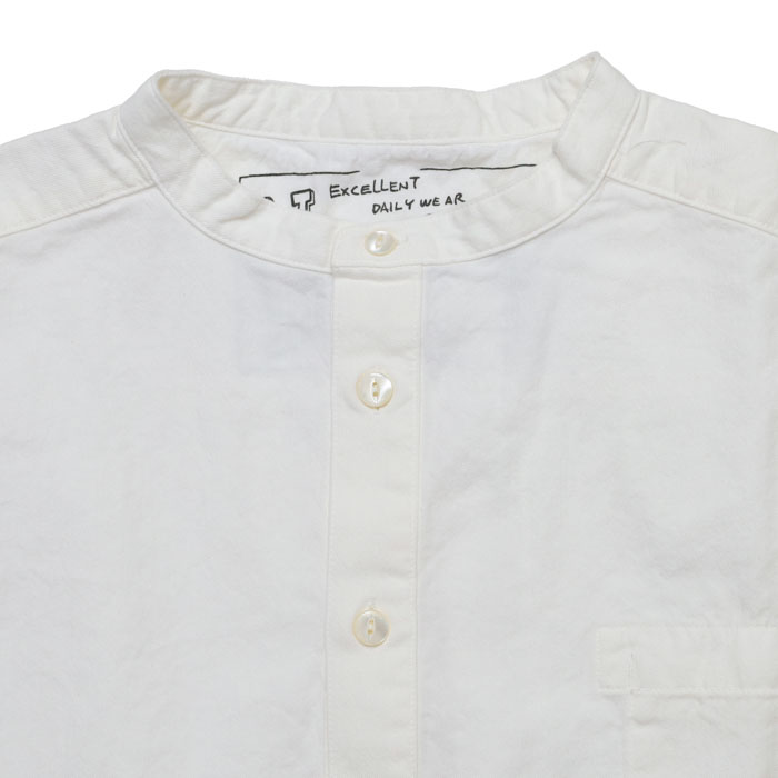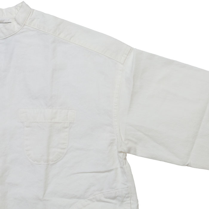 53S-47 HAYATE ホワイトシャツ 洗えるウール混ツイル ホワイト・スタンドプルオーバーシャツ