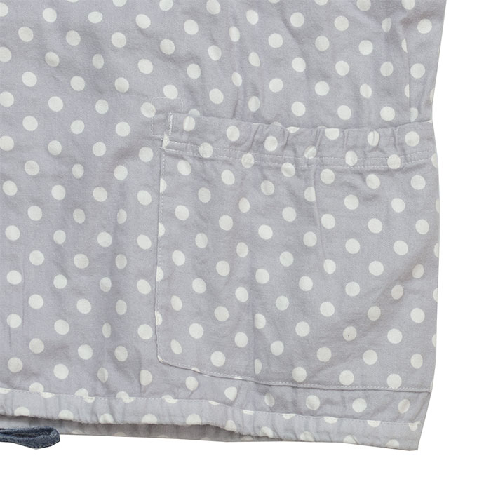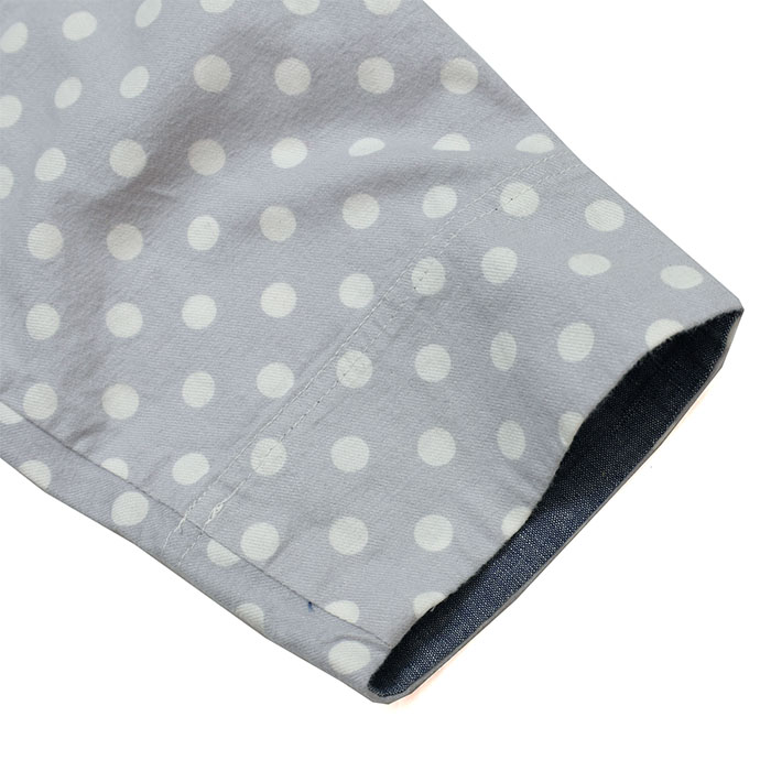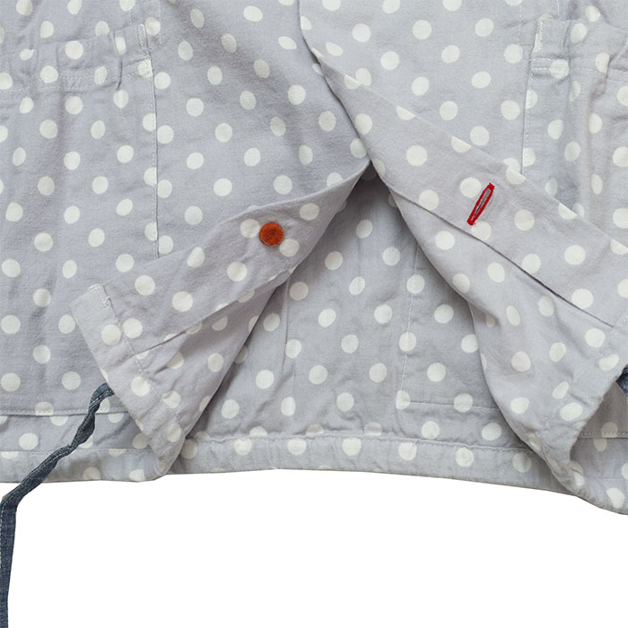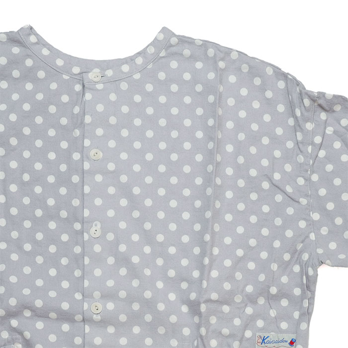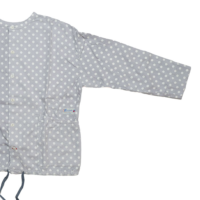 53S04 抜染水玉 前後ろ 2Wayカーディガン は、快晴堂【かいせいどう】の起毛したあたたかさのある肌触りとかさばらない生地の厚さで、秋の少し肌寒い時期から春まで長くお楽しみいただける羽織り。コットンの綾織生地に、水玉を抜染してからフランネル仕上げしたビエラは、柔らかなぬくもりのある生地。快晴堂オリジナル生地となり、抜染によりエッジがやさしい印象の水玉柄となっています。