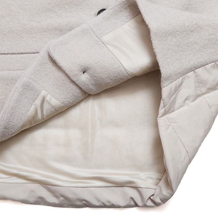 | 素材 | 表地:本体ウール100% キルト部分:表地・裏地ポリエステル100% 裏地:ポリエステル100% 中綿:ポリエステル100% |