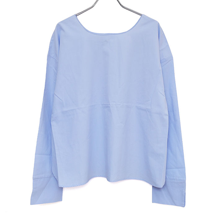 541147 やわらかコットンインナーSETシリーズ 2WAY シンプルニットプルオーバー+ブラウスは、mao made【マオメイド】のコットン100%のソフトな風合いの糸を使用したスタンダードな2WAYセット。ブルーのインナーで爽やかな雰囲気に。重ね着はハードルが高いと感じている方にもこれなら安心。もちろんそれぞれ他のアイテムと合わせることも。前後どちら側でも着れるので、コーディネートの幅も広がります。