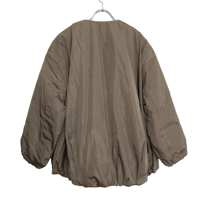 NEW 551309 ノーカラーバルーンシルエットのブルゾン サイズ Free カラー 38カーキ 99ブラック 在庫有り ¥23,980 ¥23,980 ¥23,980(税込) SOLD OUT この商品に関するお問い合わせ 数量 この商品に関するお問い合わせ カラー38カーキ、99ブラック 素材ポリエステル100% サイズ 寸法身幅65cm、総丈 前61cm、後66cm 商品説明 551309 ノーカラーバルーンシルエットのブルゾンは、mao made【マオメイド】のハリとツヤのあるポリエステルのヴィンテージグログランを表面に使用し、裏地に中綿のキルティング加工を施したブルゾン。ゆったりとした身頃と大胆に落ちた肩のラインがリラックスした着心地。裾の内側にギャザーを入れてコロンとしたまるいシルエットに。さらに、後身頃の裾にはたっぷりとタックを入れ、より立体的なシルエットに仕上がっています。