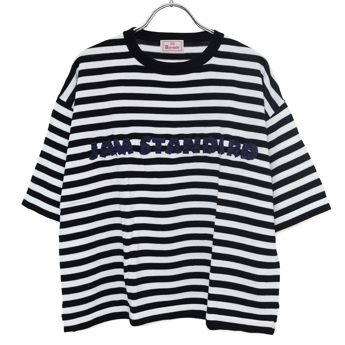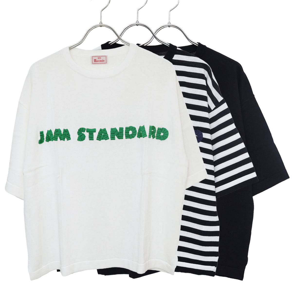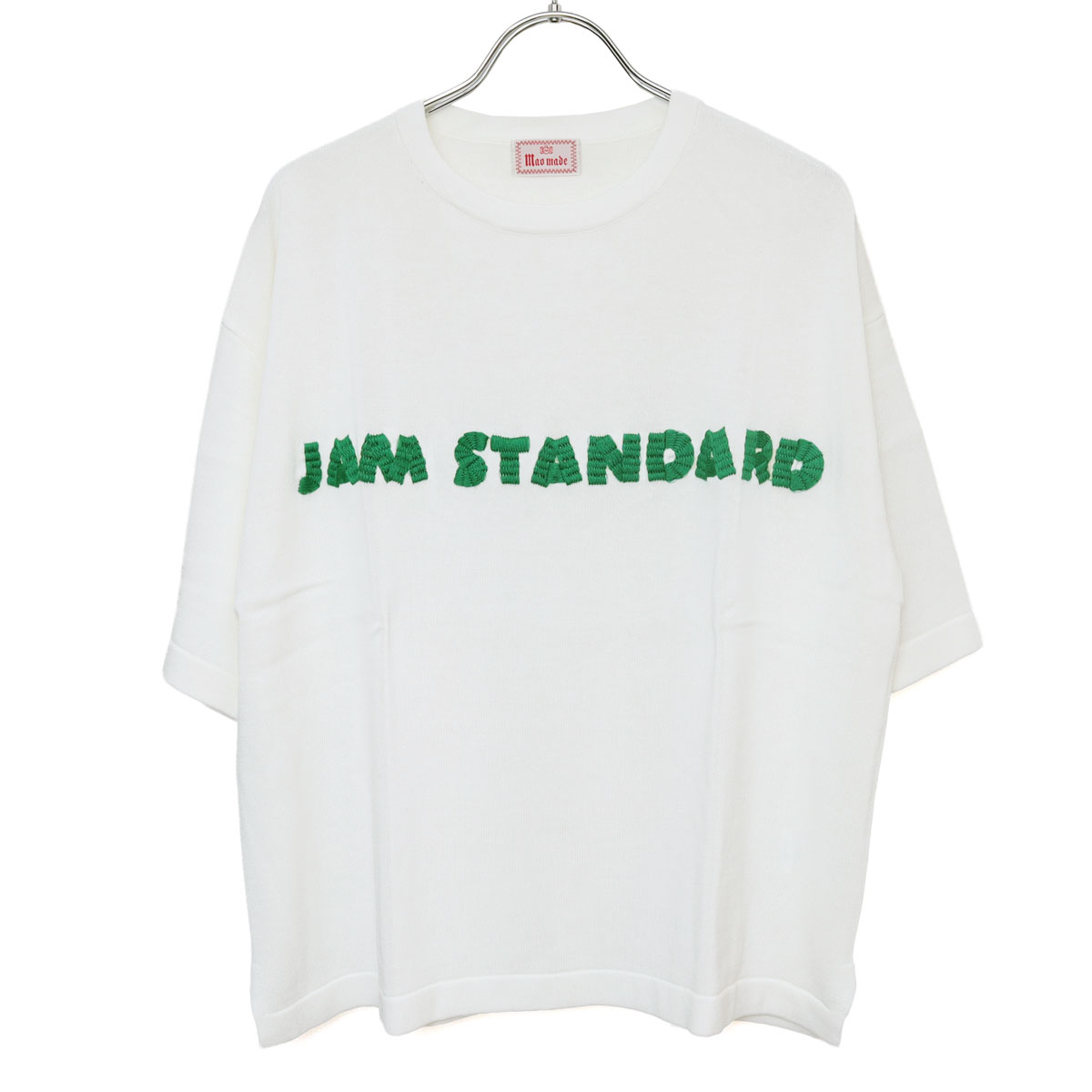 611143 シャリコットン embroidery ししゅういろいろシリーズ ロゴザクザクししゅう5分袖ニットTEE は、mao made【マオメイド】のリネンのようなシャリ感、ほのかなツヤ感、表面の毛羽立ちが少ない目面が綺麗なコットンの糸を使用した、薄過ぎず厚過ぎずのちょうど良い肉感のニットTEE。カットソーのTシャツよりも品よく見えてカジュアルに着こなせる大人にぴったりなアイテム。ラフにさしたロゴ刺繍もTシャツとは差がつきます。