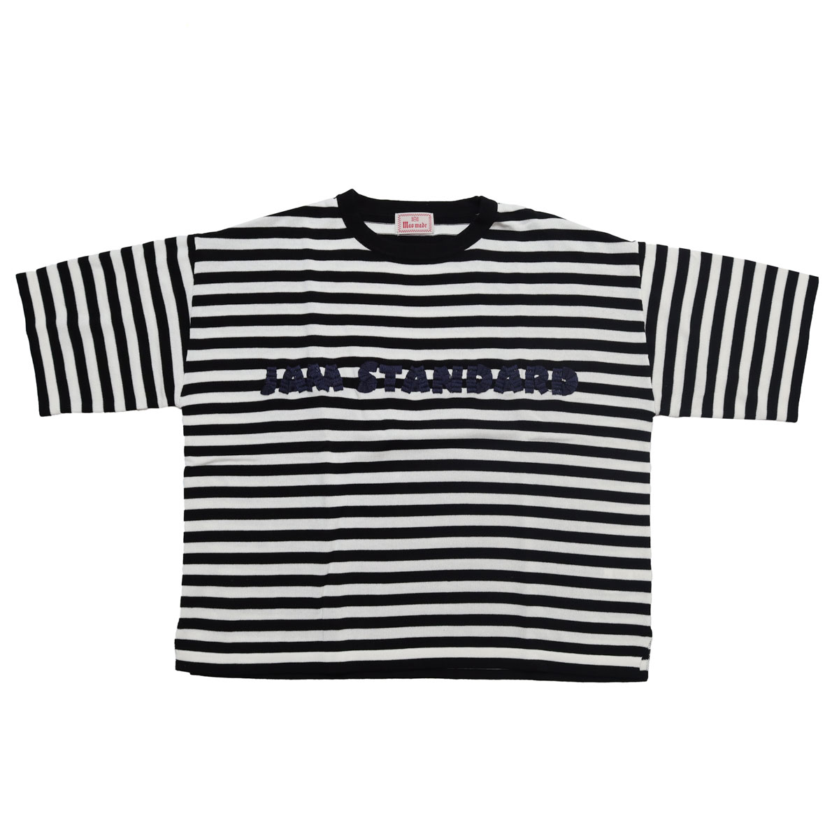 611143 シャリコットン embroidery ししゅういろいろシリーズ ロゴザクザクししゅう5分袖ニットTEE