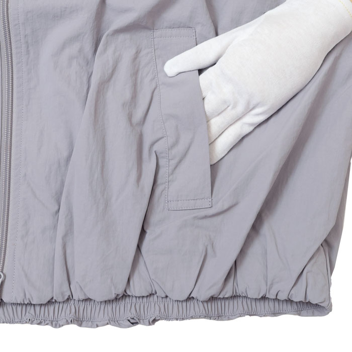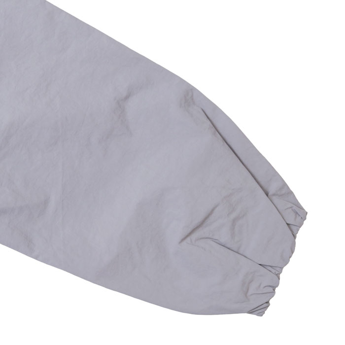 611308 ヴィンテージウェザー バルーンシルエット ZIP UP ジャケット は、mao made【マオメイド】のナイロンを高密度に織った、洗いざらしたようなシボ感が特徴のウェザークロスを使用したバルーンシルエットのジャケット。ほどよいハリとマットな素材。裾はゴムでギャザーを寄せてくるんと内側に巻き込んでバルーン風に。さっと羽織るだけでサマになるアイテムです。