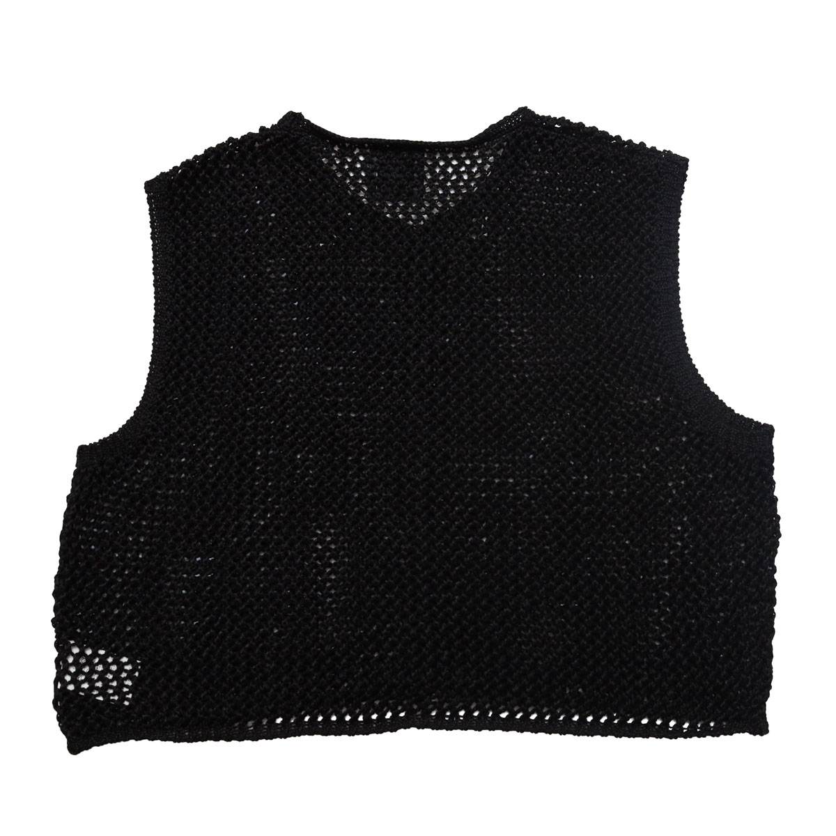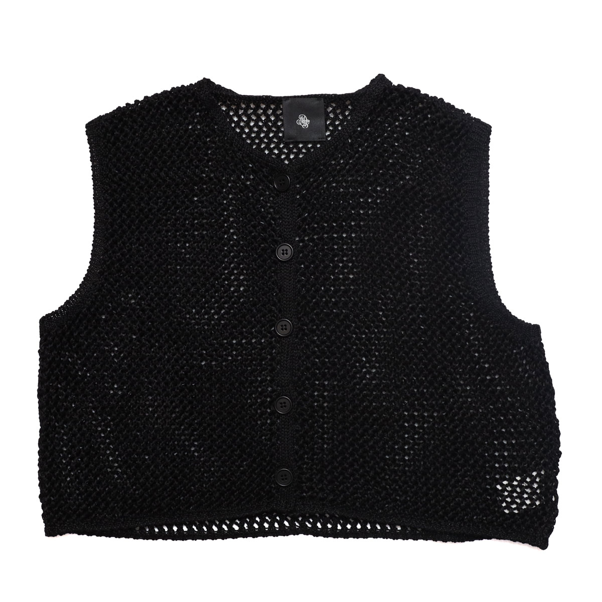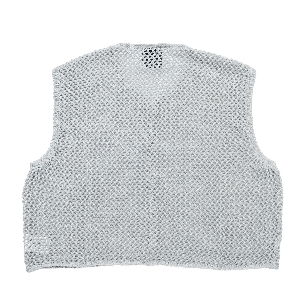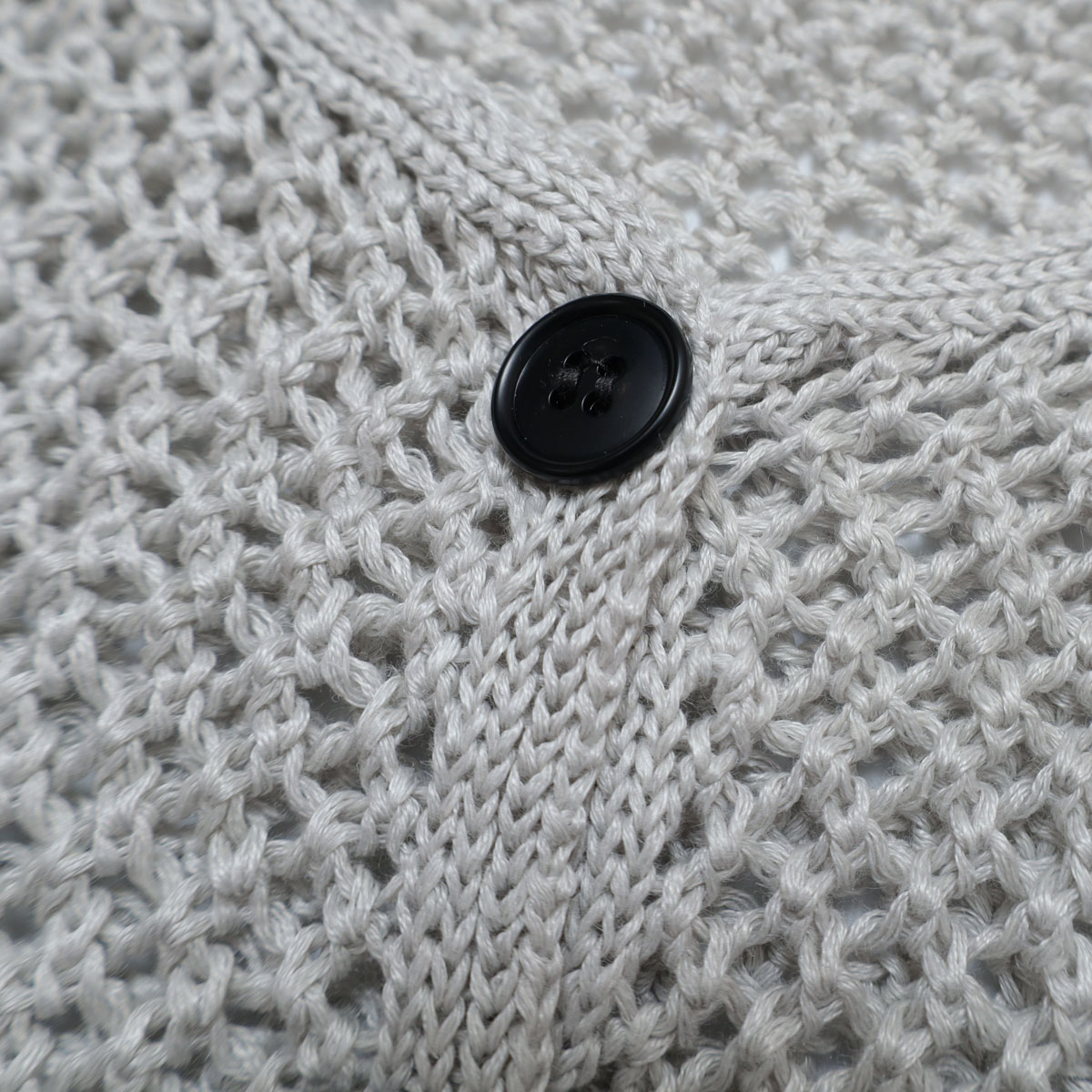 CNMDS2601 5GG LINEN OPENWORK KNIT VEST は、maison de soil【メゾンドソイル】のリネンの糸を使用し、メッシュに編み立てられた前開きタイプのベスト。コンパクトな着丈でワンピースなどとの相性も◎コーディネートにプラスするとグッと今年らしい印象になるアイテムです。