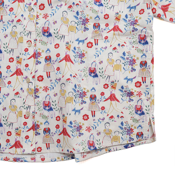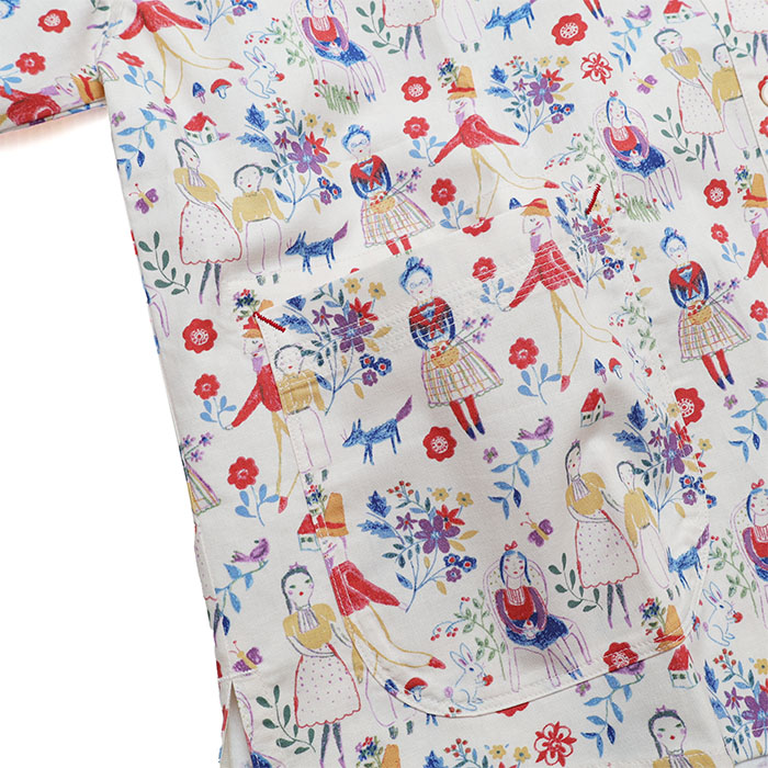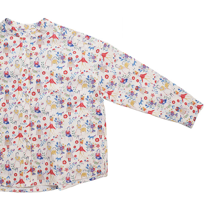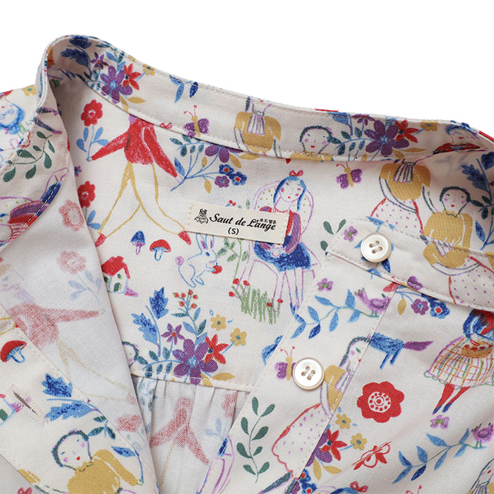 DA26001 スタンドカラーシャツ は、D-ARMS ORIGINAL【ディーアームズオリジナル】のキュートな総柄シャツ。かわいらしい柄ですが、ジャケット感覚でも羽織れるようなすっきりとしたスタンドカラーとワイドな身幅で可愛らしすぎない印象に。左右のアシンメトリーポケットがさり気なく、バックのギャザーやハンガーフックもポイントに。秋冬はニットやカーディガンのインにしたり、インナーにタートルネックなどを重ねても◎春夏は一枚でも羽織でも。ロングシーズン活躍し、コーディネートに華を添えてくれるアイテムです。オリジナル商品なので、数量限定!