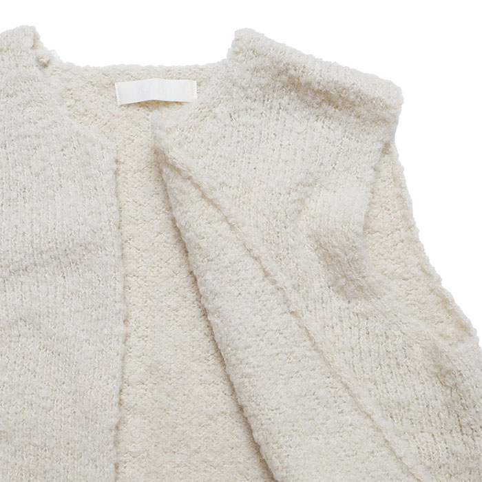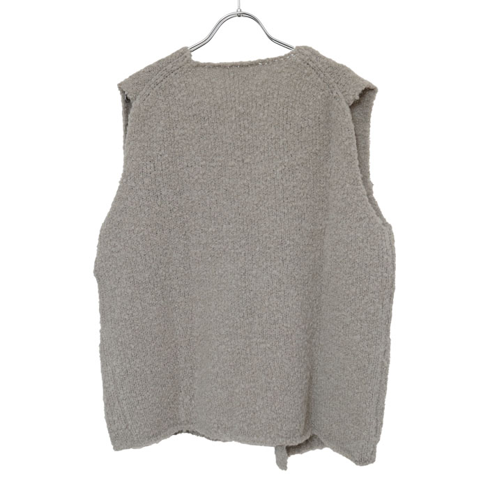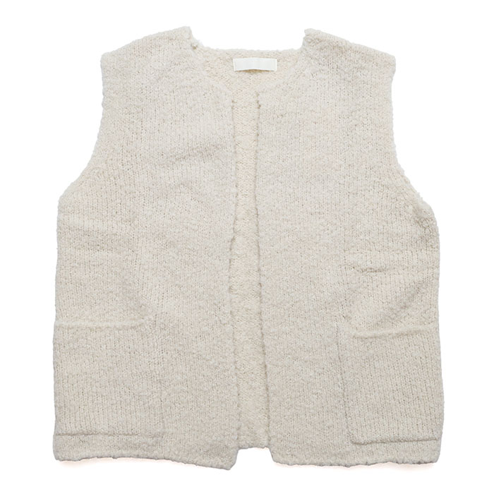 E253K180 alpaca wool vestは、evam eva【エヴァムエヴァ】のアルパカとウールを組み合わせたもこもことボリュームのある素材のベスト。その素材感はシンプルな装いにも華やかさを添え、コーディネートのアクセントとして冬の装いを彩るアイテムです。※必ずドライクリーニングしてください。水洗いは風合いの変化、縮みの原因になりますのでお避けください。タンブラー乾燥はお避けください。
