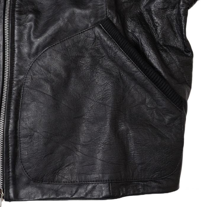 EB24129 リメイク ブルゾン は、ESTROISLOSE【エストゥロワルーズ】のUSED素材を利用したサスティナブルなレザーブルゾン。袖や裾リブ、ポケットなどこだわりのシルエットに仕上がっています。色の出方や切り替え方など、世界にひとつだけのアイテムです。