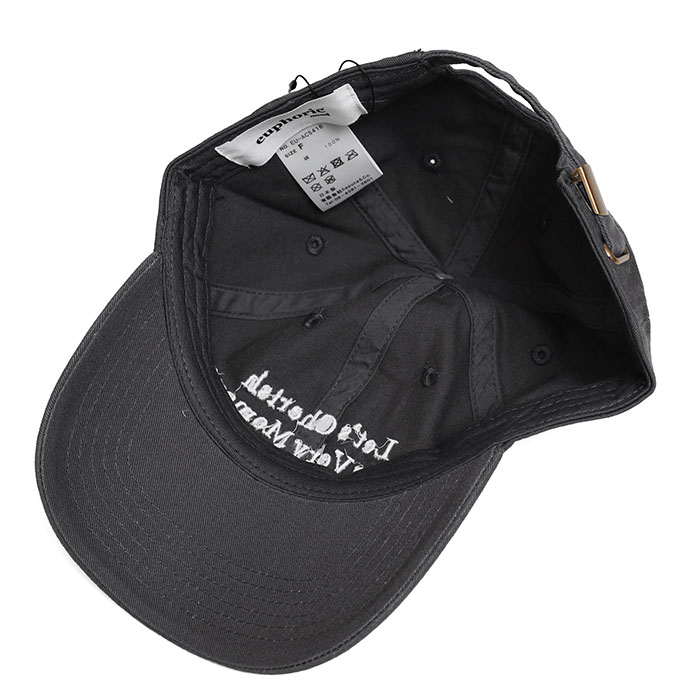 EU-AC5416 Message Capは、euphoric’【ユーフォリック】のやわらかく抜け感のあるベージュ、ニュアンスのある深みが魅力のチャコール、引き締め役として万能なブラックの三色展開のキャップ。男女問わずかぶりやすい絶妙な深さのボディにワンウォッシュ加工で、被り心地も◎シーズン問わず活躍するアイテムです。