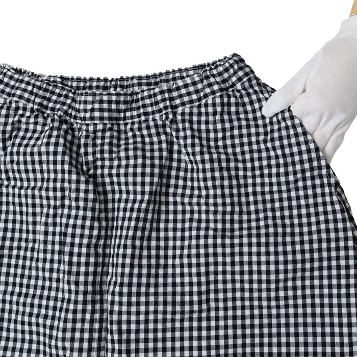 深い股上が特徴的で、名前の通りペンギンのようなシルエットが可愛い人気デザイン。独特のボリュームがありつつも足元はスッキリ見えて抜け感が出ます。シンプルなTシャツ一枚でも、おしゃれに見せてくれる一枚です。ウエストはゴムとひもで調節可能。