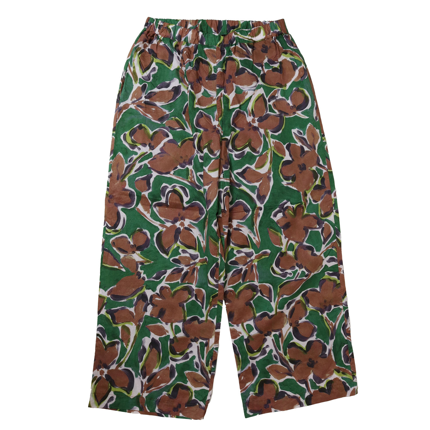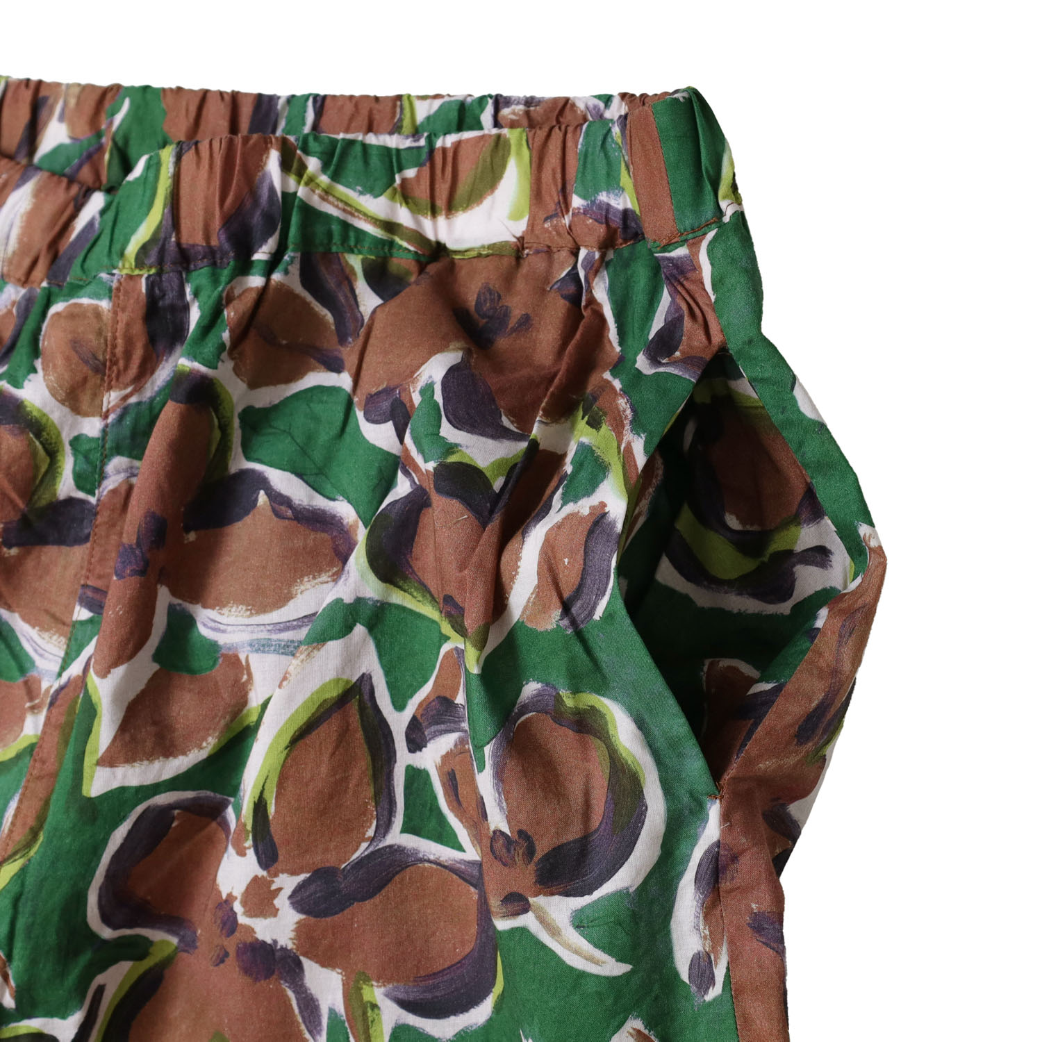 ゆったりとしたワイドシルエットで、足のラインを拾わずストンと落ちて形をキープしてくれます。甘さを控えたラフボタニカルプリントが華やかさをコーディネートにプラスされ、シンプルなトップスを合わせるだけで着こなしが完成します。