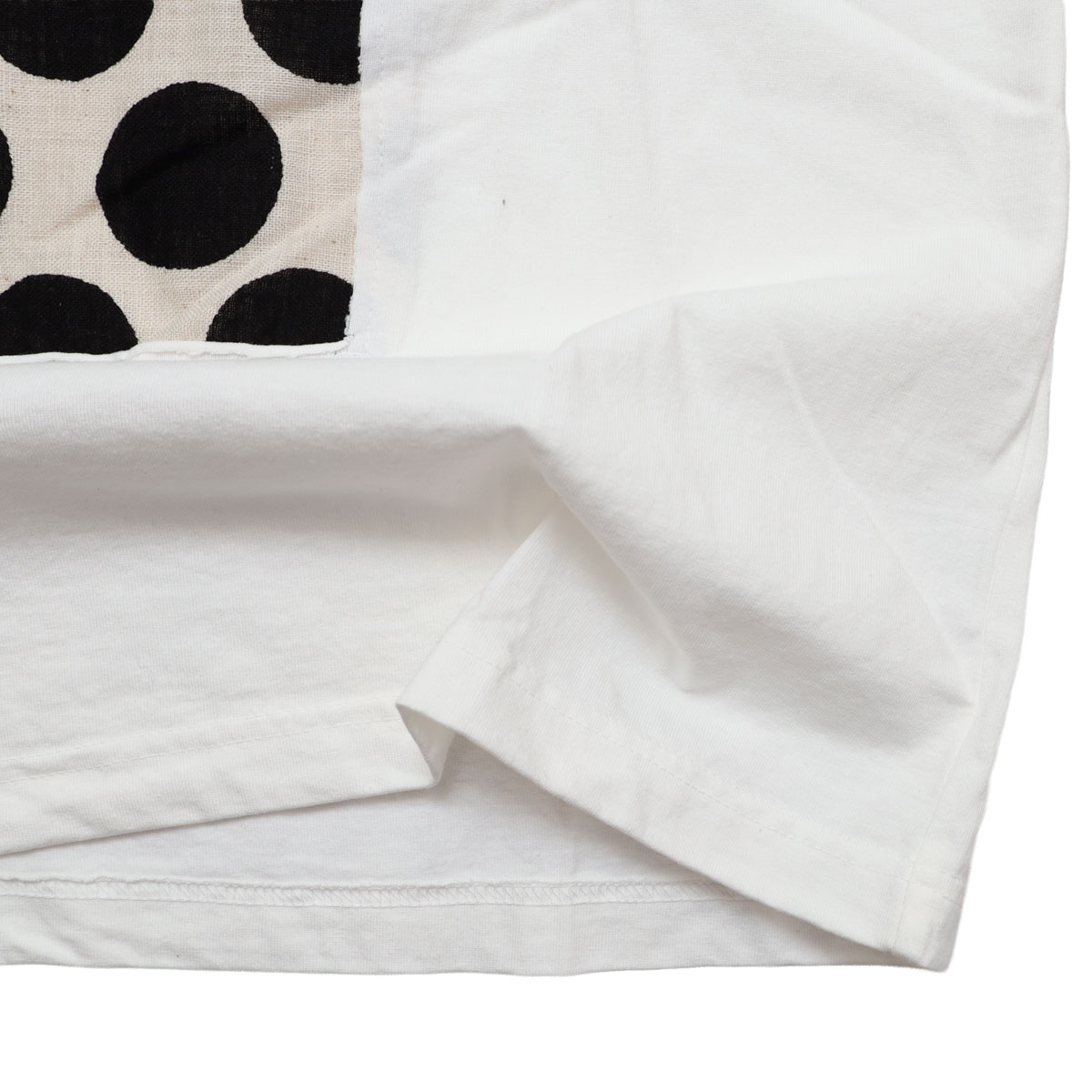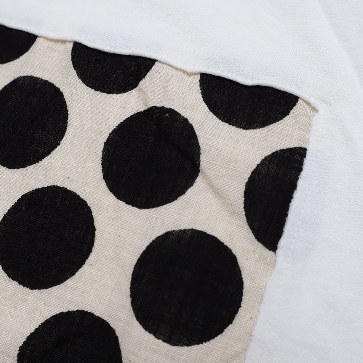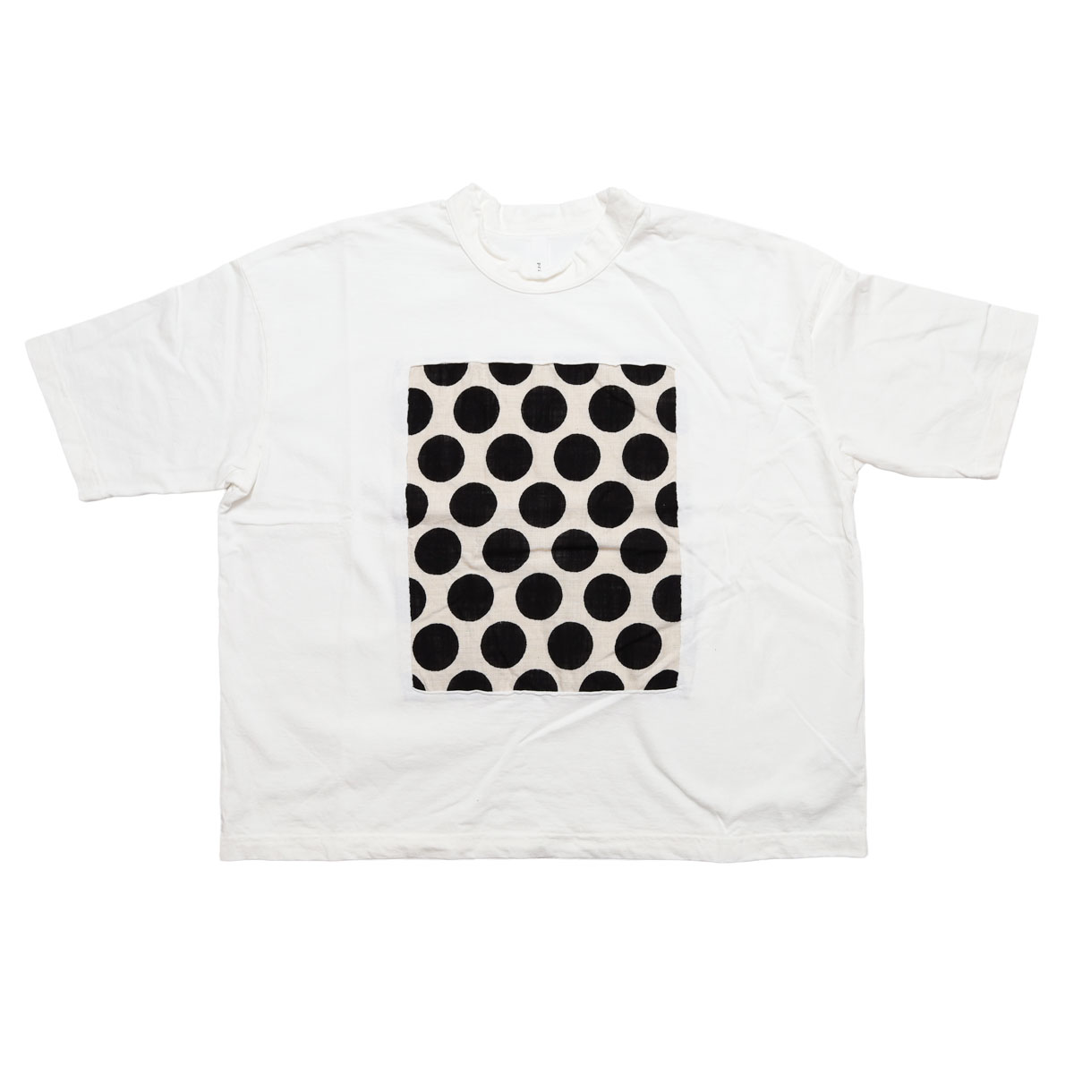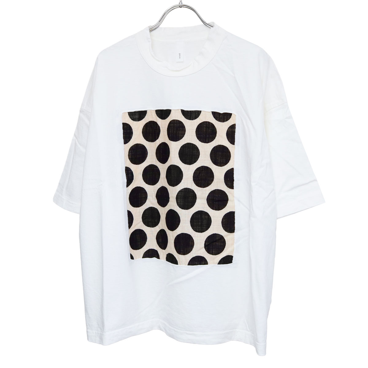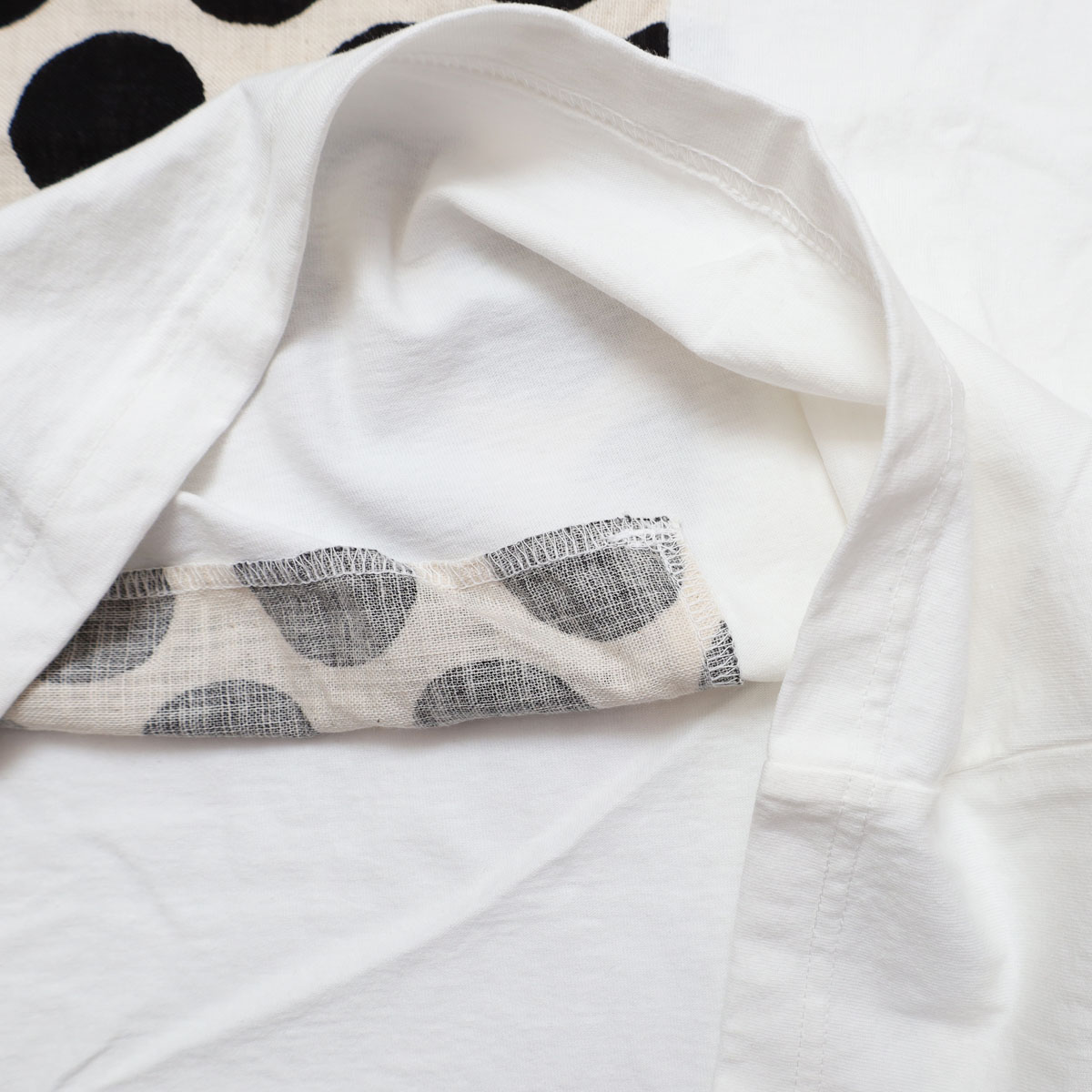 P91638 17/1空紡天竺×10/1ムラ糸プリント 5分袖フレームTシャツ は、prit【プリット】の程よい厚みで少しドライタッチな生地を使用したTシャツ。フレーム型にカットオフした前身頃にドット柄の生地を合わせた、組み合わせが可愛いTシャツです。