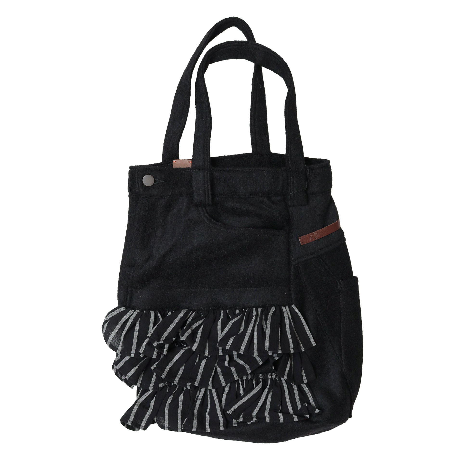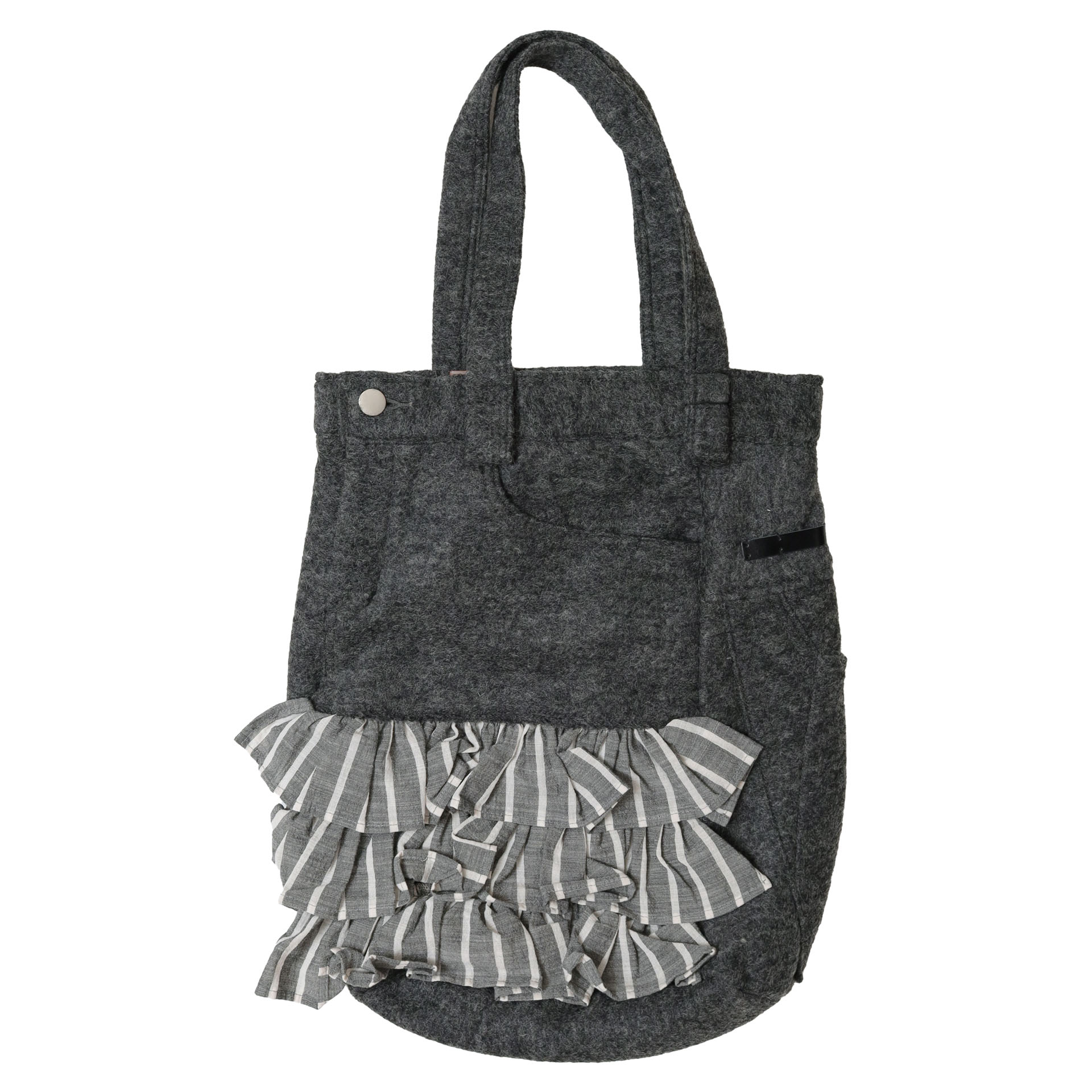 NEW TG055 リメイクバッグ サイズ F カラー gray black 在庫有り ¥17,600 ¥17,600 ¥17,600(税込) SOLD OUT この商品に関するお問い合わせ 数量 この商品に関するお問い合わせ カラーgray、black 素材ウール57% ポリエステル43% サイズ 寸法縦35cm 横33cm マチ18cm 持ち手56cm 商品説明 TG055 リメイクバッグは、tsukinowa【ツキノワ】のパンツをリメイクしたデザインが目を惹くバッグ。ウール混で温もりを感じる生地に、ストライプのフリルをあしらった、他にはないデザイン性の高いアイテム。肩にかけられる長さの紐も嬉しいポイント。単調になりがちな冬のコーディネートのアクセントになってくれます。
