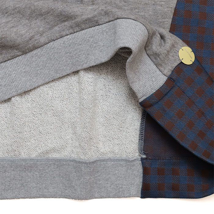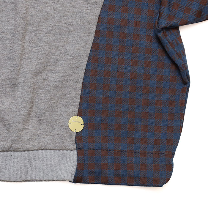 TT174 ギンガムジャガードのワイドスウェットプルオーバーは、tsukinowa【ツキノワ】の両サイド異素材切り替えのツキノワ定番人気デザインのトレーナー。今季はシックなギンガムジャガードを使用。身幅広めで大人が着れるおしゃれシルエットのスウェットです。レザーパッチタグもポイントです。