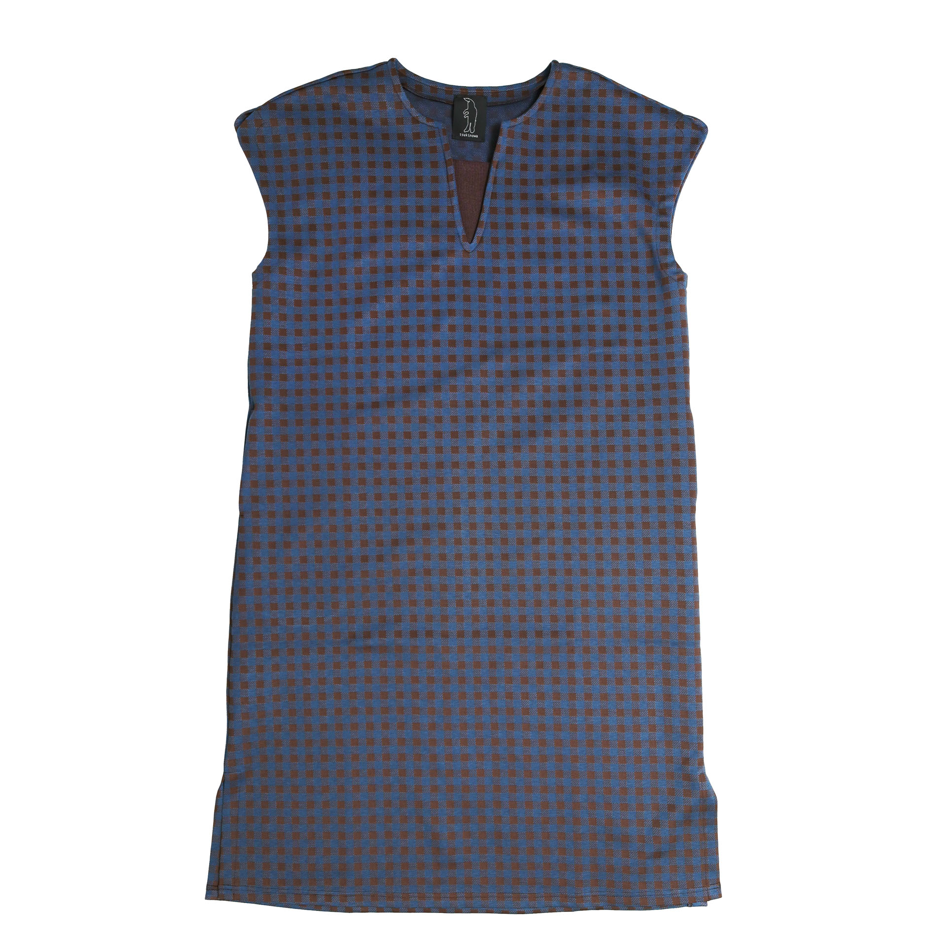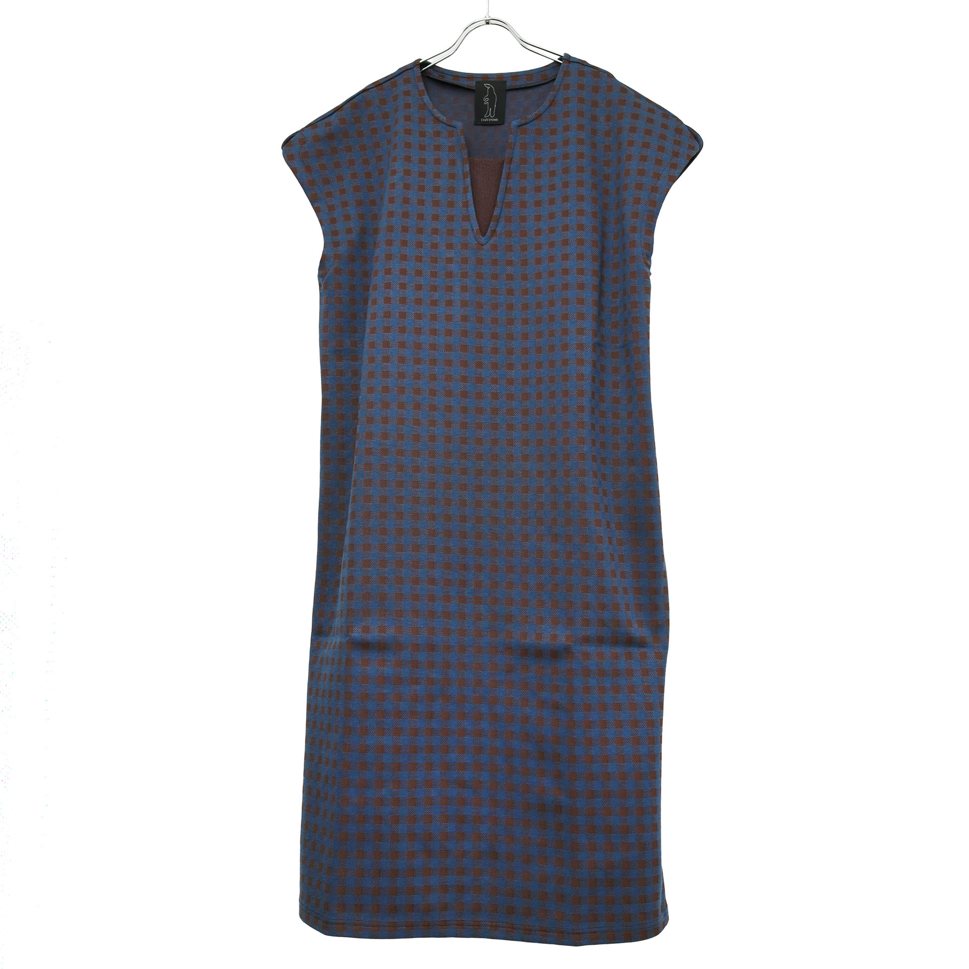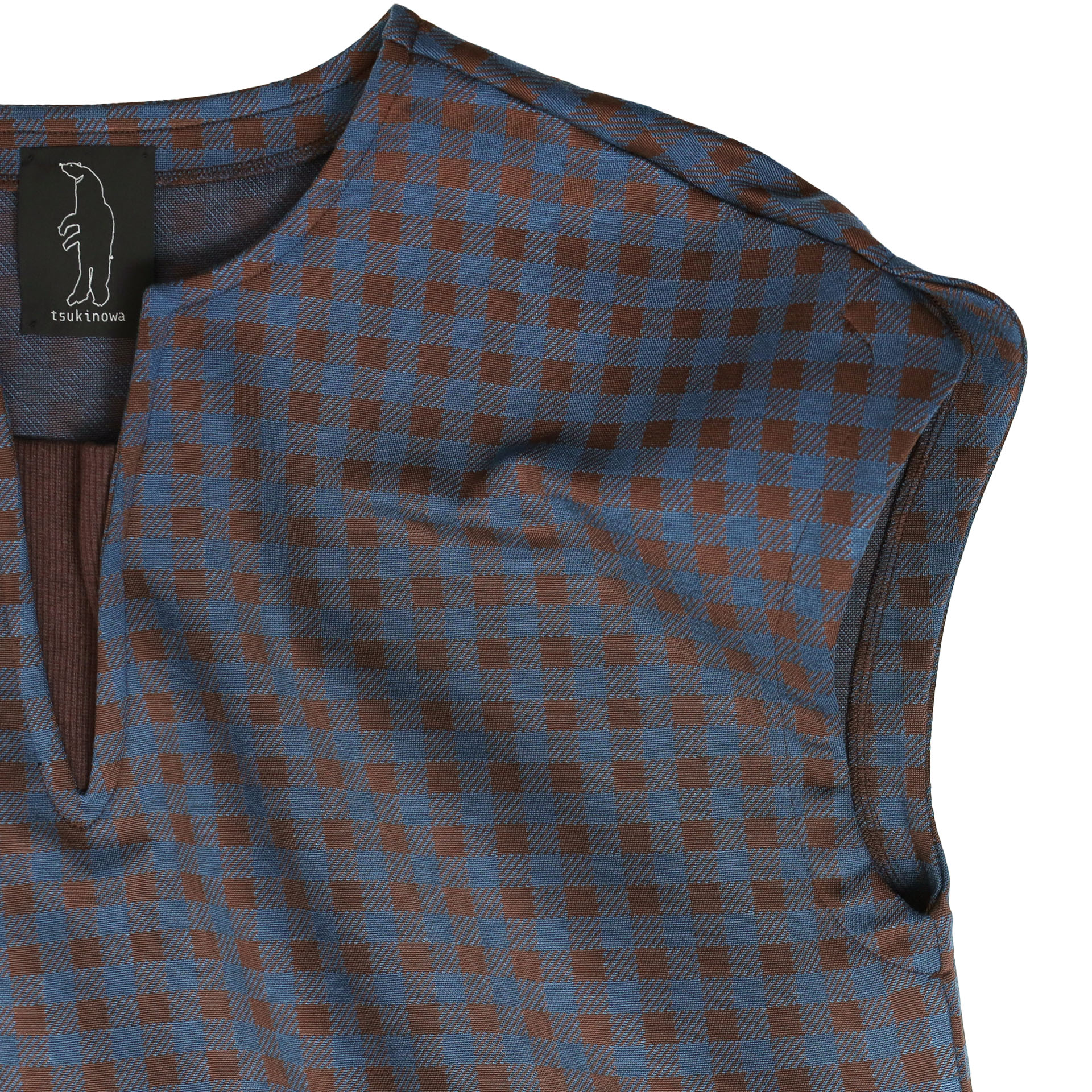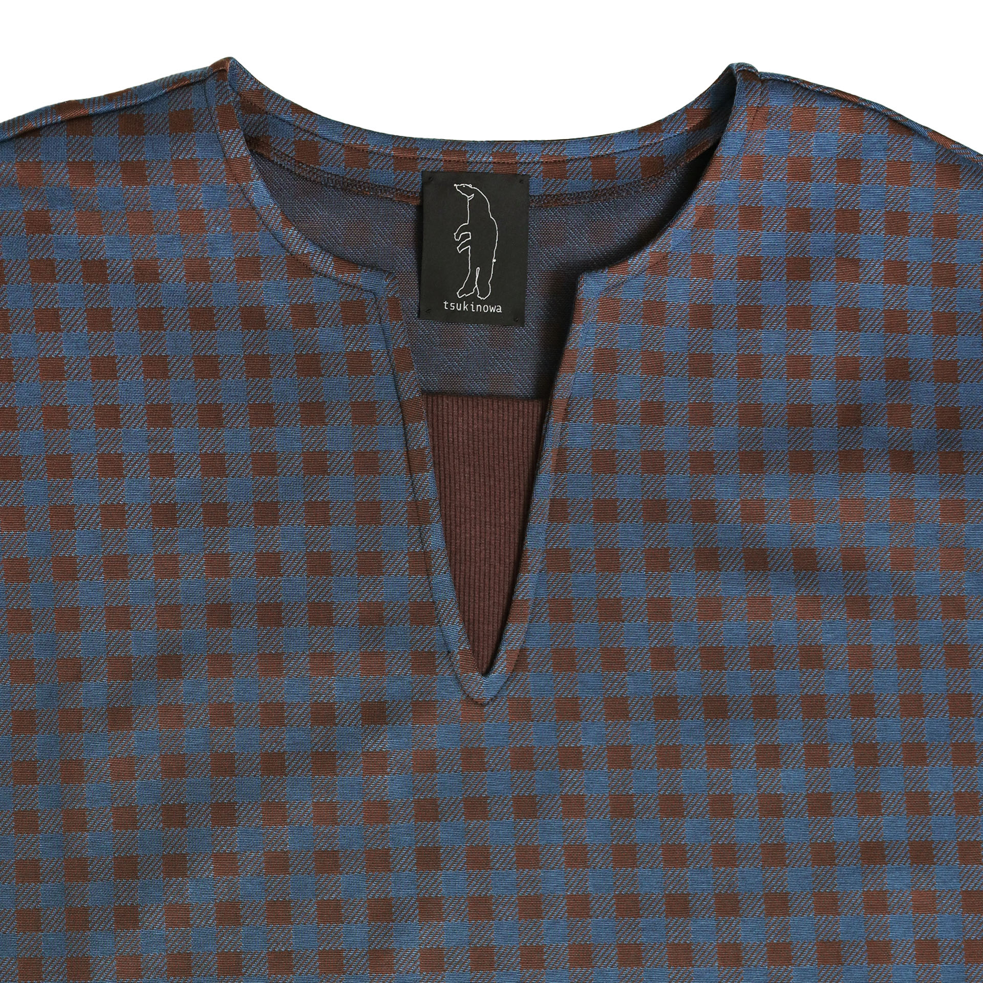 TT178 ギンガムジャガードのワンピースは、tsukinowa【ツキノワ】のブラウンとターコイズのシックな配色がさり気ないギンガムチェックのワンピース。程よく膨らみがある生地が温もりを感じる一着。合わせるインナーで雰囲気も変わります。ストンとしたシルエットで裾のスリットが抜け感もあり、キレイなシルエットに。体のラインを拾わない生地感も嬉しいポイント。パンツを重ねても◎