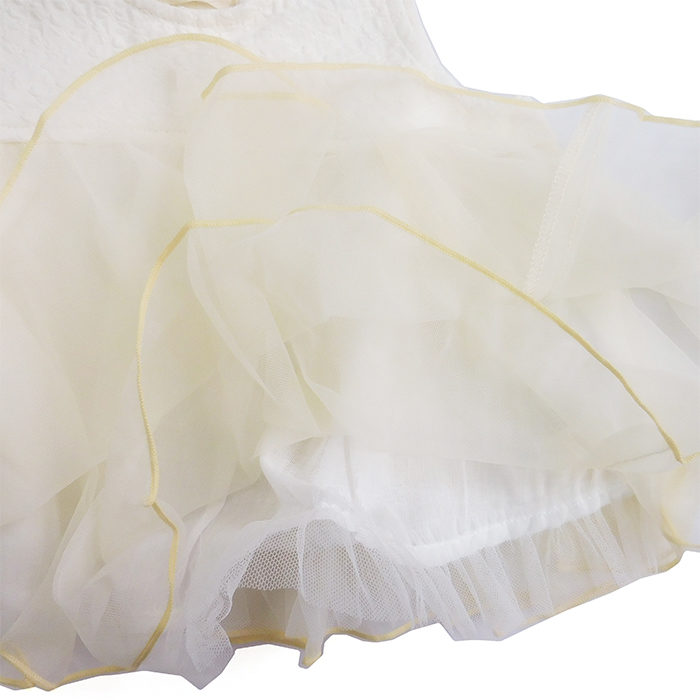 | 素材 | 表身頃:綿86%ポリエステル12%ポリウレタン2% 裏身頃・裏スカート:綿100% スカート:ナイロン100% フリル:ポリエステル100% |