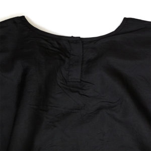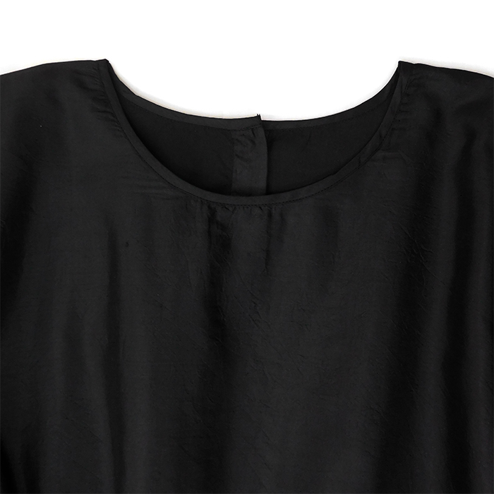 NMDS20552 HAND WOVEN COTTON SILK×SILK PLAIN DROP SHOULDER DRESS は、maison de soil【メゾンドソイル】のインド中央部、CHANDERY村の職人によって手織りされた生地を贅沢に使用したワンピース。身頃上部は100%シルク、身頃下部は60%SILK、40%COTTON素材となっており、違う生地同士を縫い合わせているのではなく、生地を織っている途中で糸を変えることで、身頃の切り替えを表現しています。シンプルなデザインながら、上下の陰影が立体感を作り出してくれるおしゃれな一着。ボートネックで首回りをすっきりと見せることで、リラックス感のあるデザインとなっています。ウエストにはスラッシュポケットも付いています。サイズ1:身幅71cm 肩幅71cm 袖丈38cm 着丈110cm アームホール19cm サイズ2:身幅71cm 肩幅71cm 袖丈38cm 着丈120cm アームホール19cm