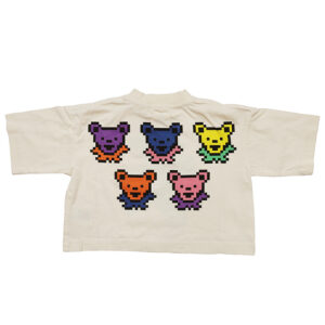 2124124 GRATEFUL DEAD ベアシャツ は、NEEDLE WORKS【ニードルワークス】のピクセル画タッチのベアプリントがレトロかわいいTシャツ。バックプリントも目を引きます。ワイド幅でゆとりのあるシルエット。柔らかなコットン素材で着心地も◎な一着です。