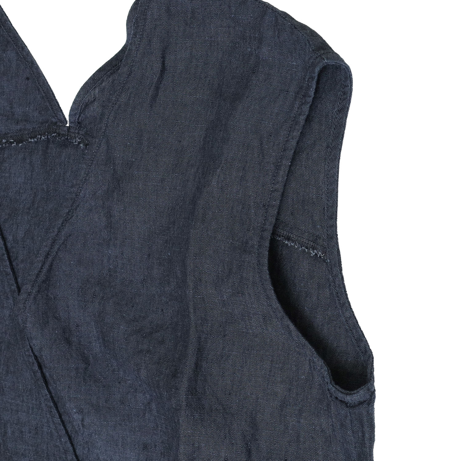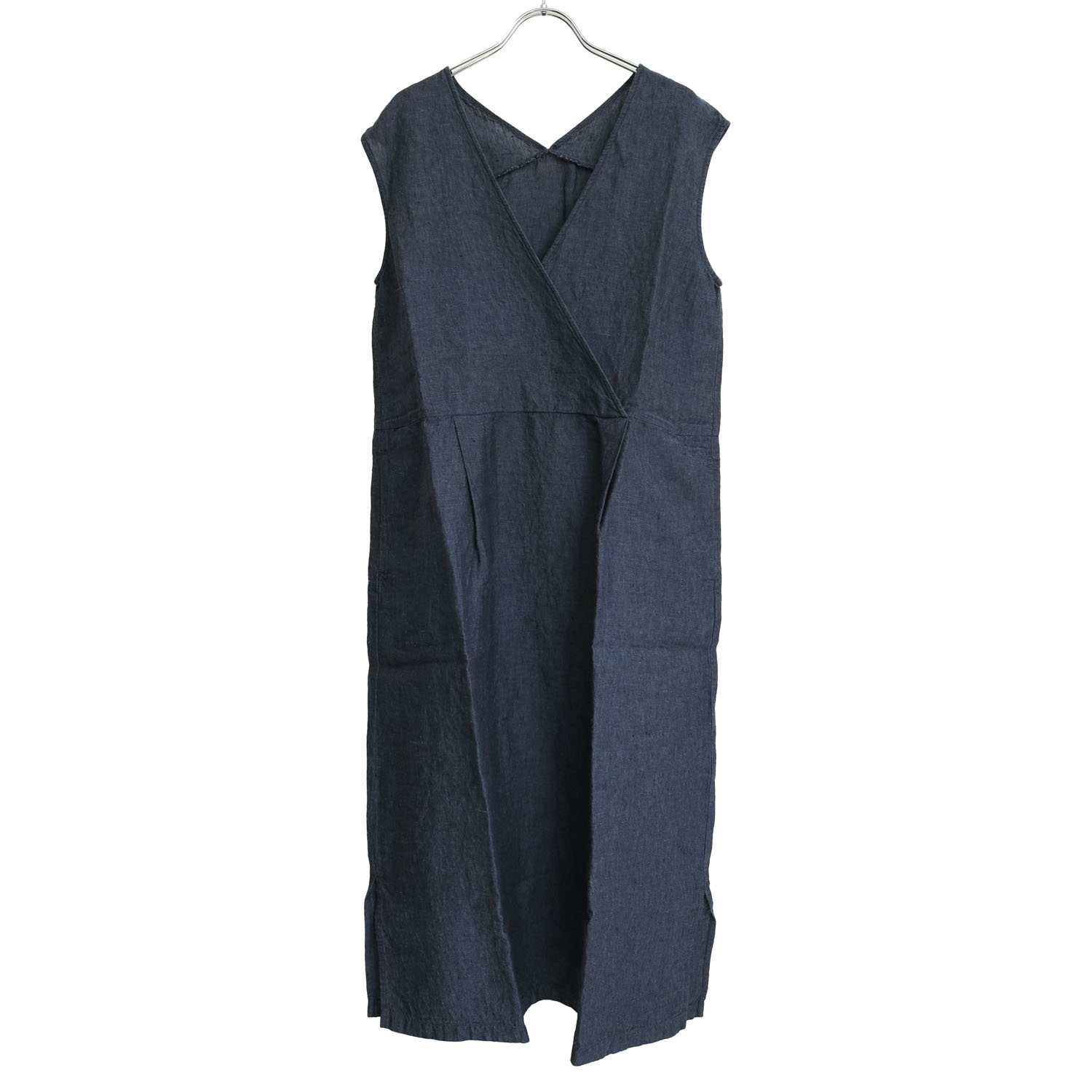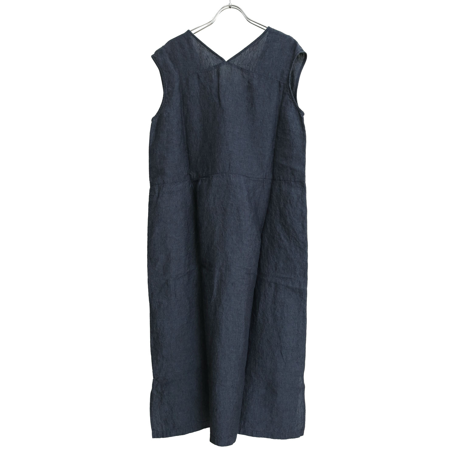 リネン100%の軽やかな風合いと、すっきりとしたノースリーブデザインが魅力のワンピースです。