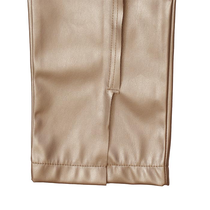 ZZ243013 Metaric pants は、ZOZIO【ゾジヲ】のイタリアのBARTLOWW社がデザインしたマットな印象の合皮素材を使用した湿式特有のソフトでしなやかな生地を使用して作られたレギンスタイプのパンツ。ウエストには太目のゴムを用いることで履きやすさも抜群。裾前方にスリットが入っているので、どんなシューズとも相性が良いアイテム。一枚で履くことはもちろん、スカートやロングトップス等との重ね着アイテムとしてもお勧めです。